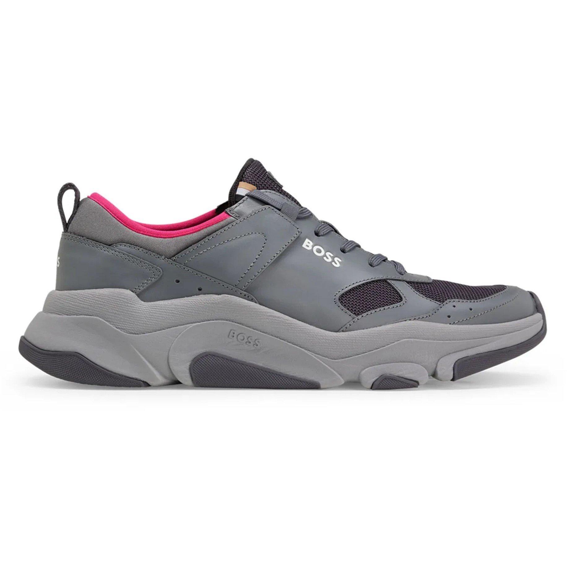The BOSS Asher Runners bring together casual appeal with athletic-inspired design elements, offering a fashionable approach to everyday shoe wear. Featuring a sleek low-top profile and quality build, these sneaker trainers balance contemporary fashion aesthetics with great comfort, making them ideal for both urban exploration and lifestyle wear.