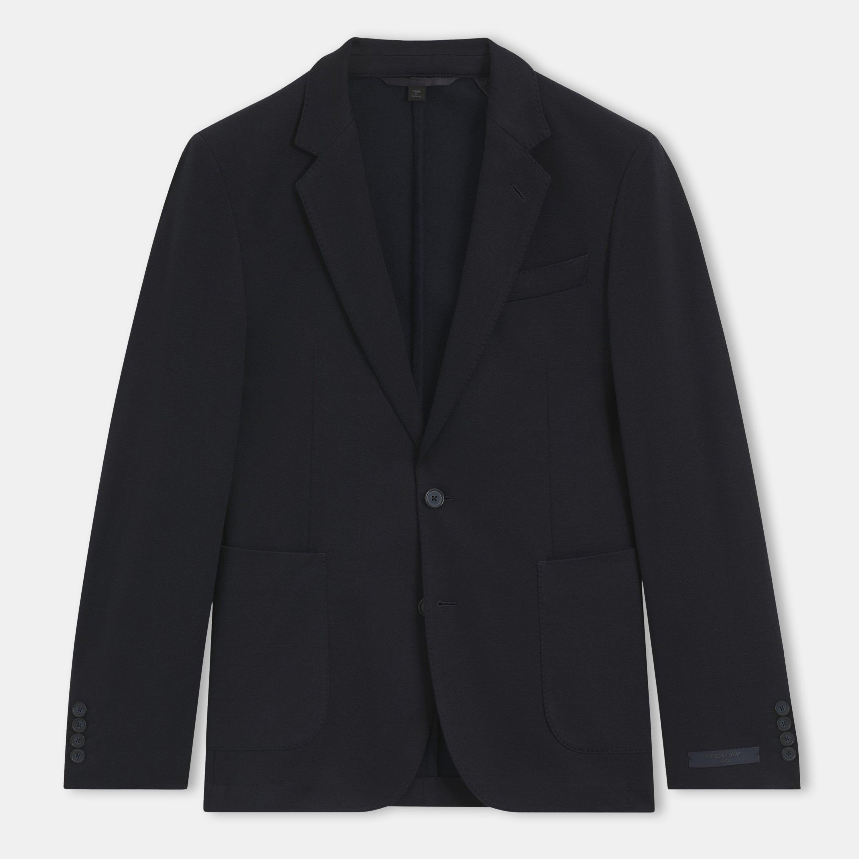 The BOSS BECKHAM x Double Breasted Blazer offers tailored structure with a subtle micro pattern. The mixed-fabric design creates a sharp, contemporary look.