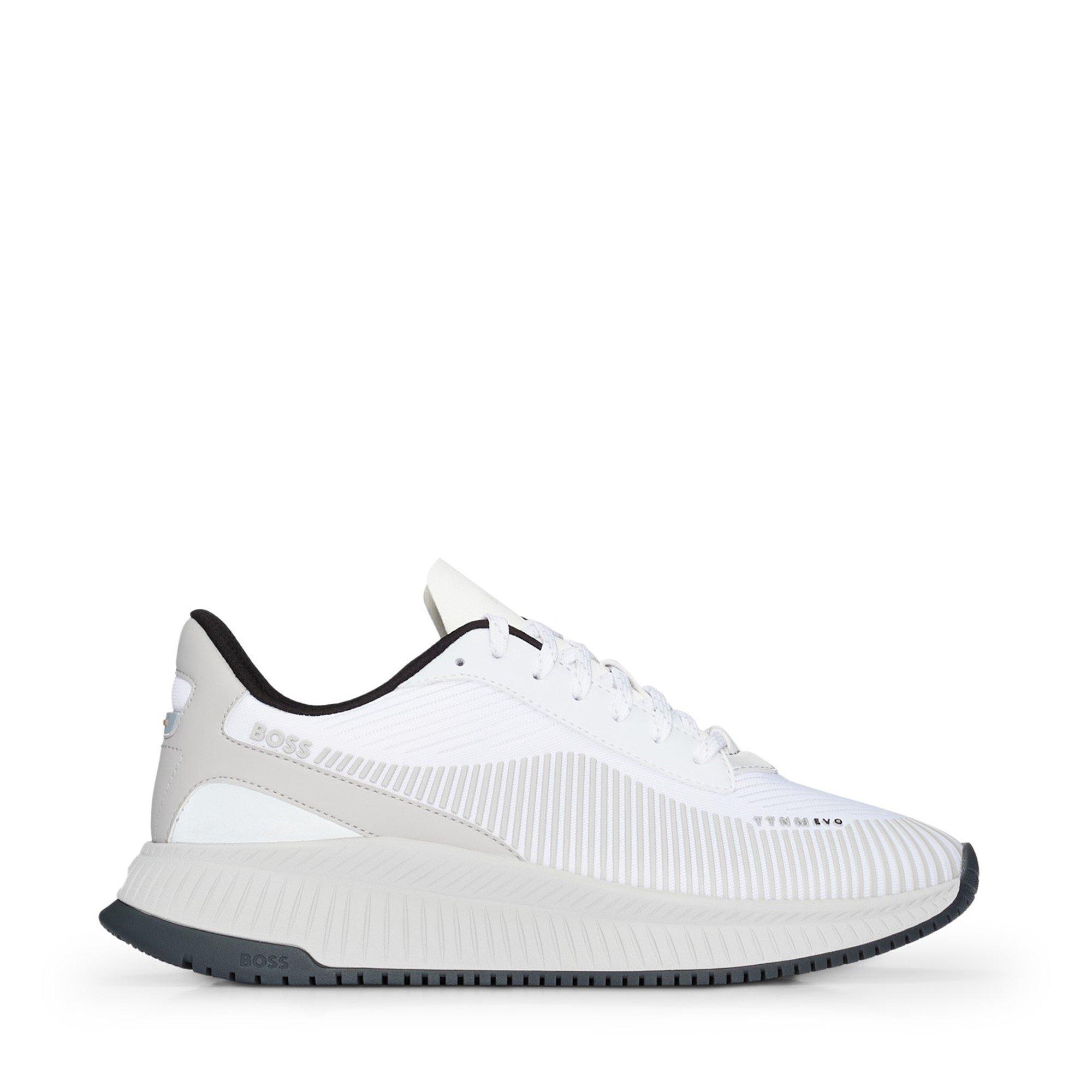 BOSS Evo Runners Low-Top Trainers deliver sleek urban style for everyday wear. These sneakers feature a minimalist low-profile shape with BOSS detailing, offering broad appeal whether paired with casual or smart-casual attire. This contemporary shoe design ensures seamless style transitions.