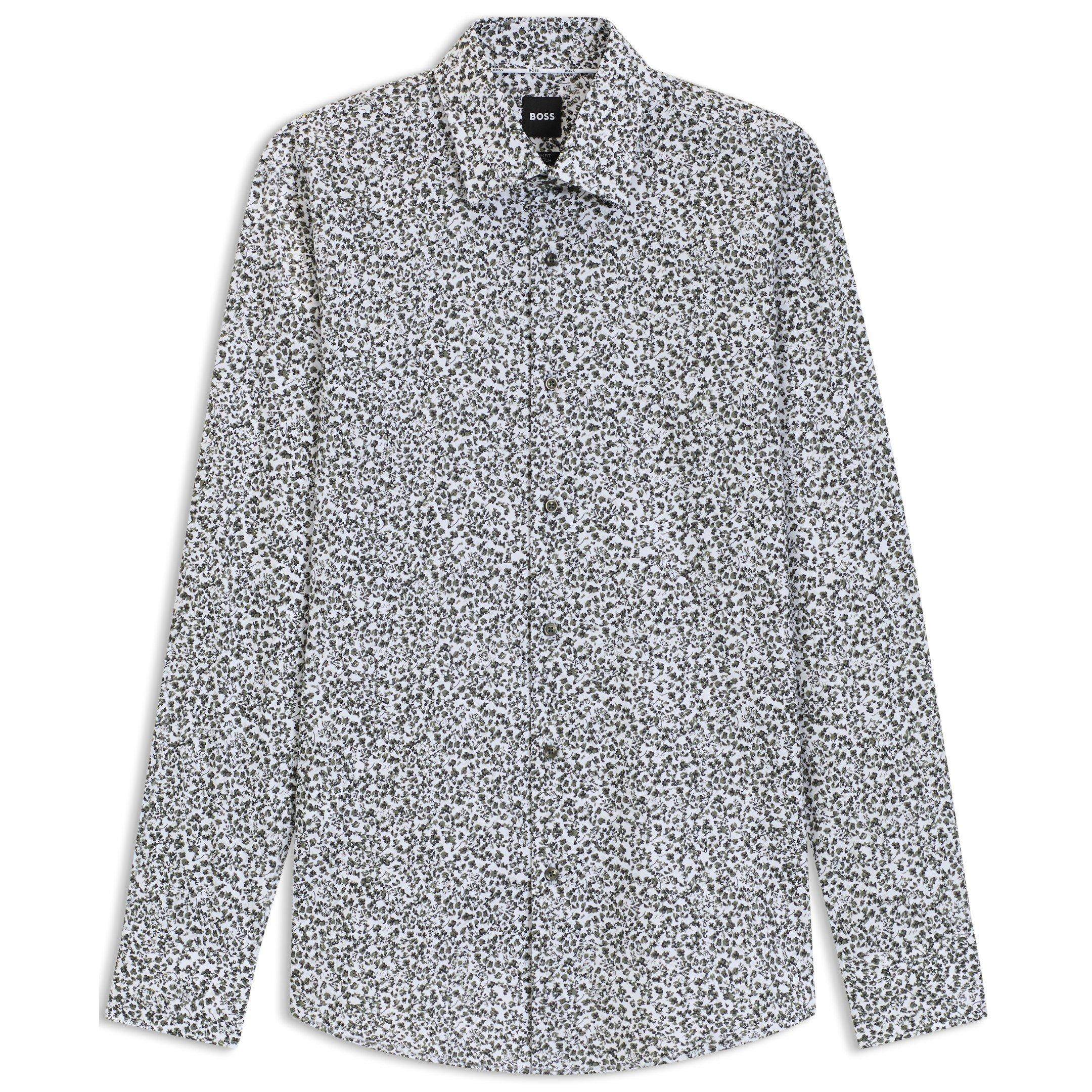 Precision tailoring meets bold florals in this BOSS Men's Floral Print Stretch Cotton Long Sleeve Slim Fit Shirt. Designed with a slim fit profile, this shirt delivers a contemporary look with careful detailing throughout.