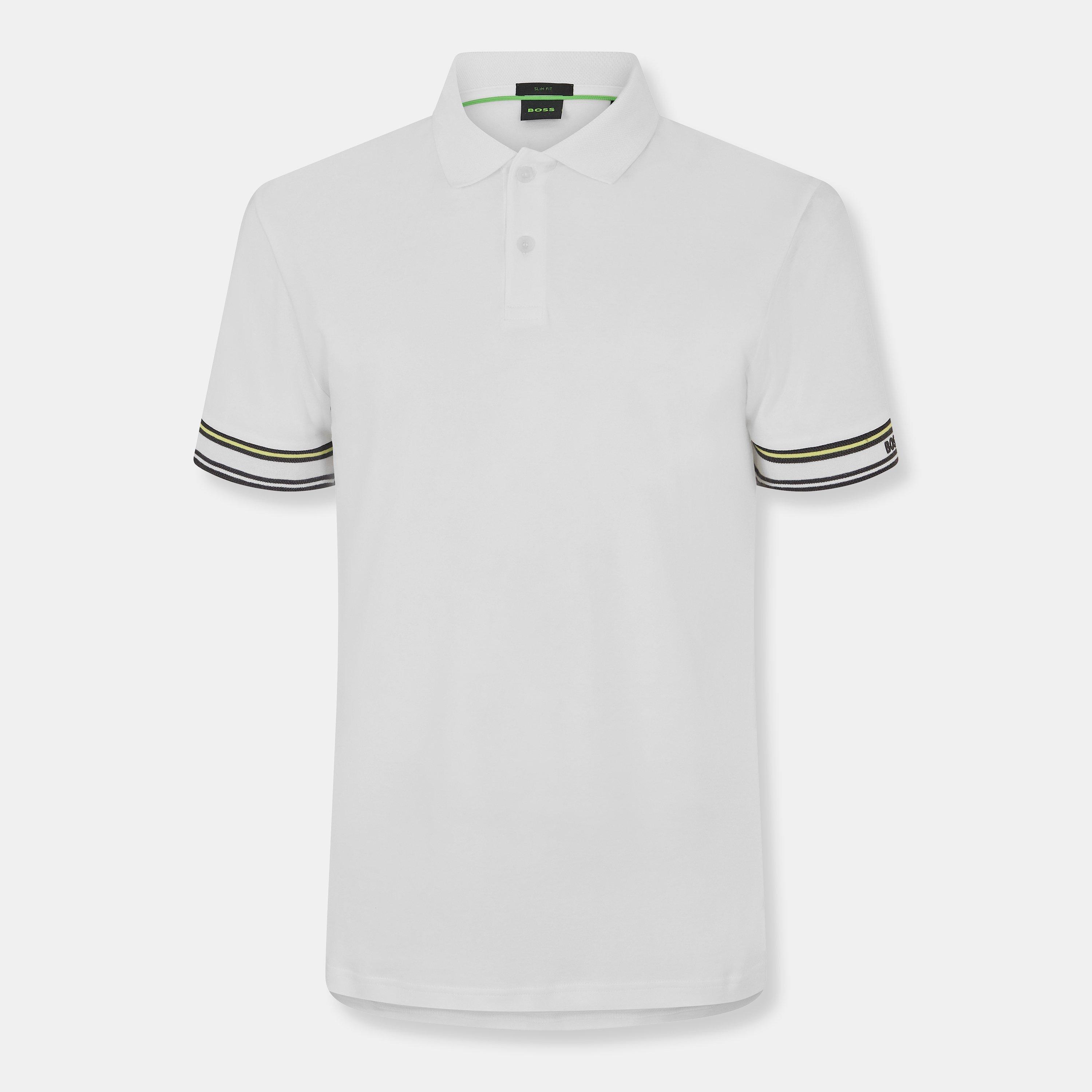 Redefining classic sportswear, the BOSS Short-Sleeve Poloshirt features a sleek button-up placket and web detailing for contemporary style. This HBG Zone Polo combines fabric with subtle BOSS branding, creating a balance of comfort and smart casual wear.