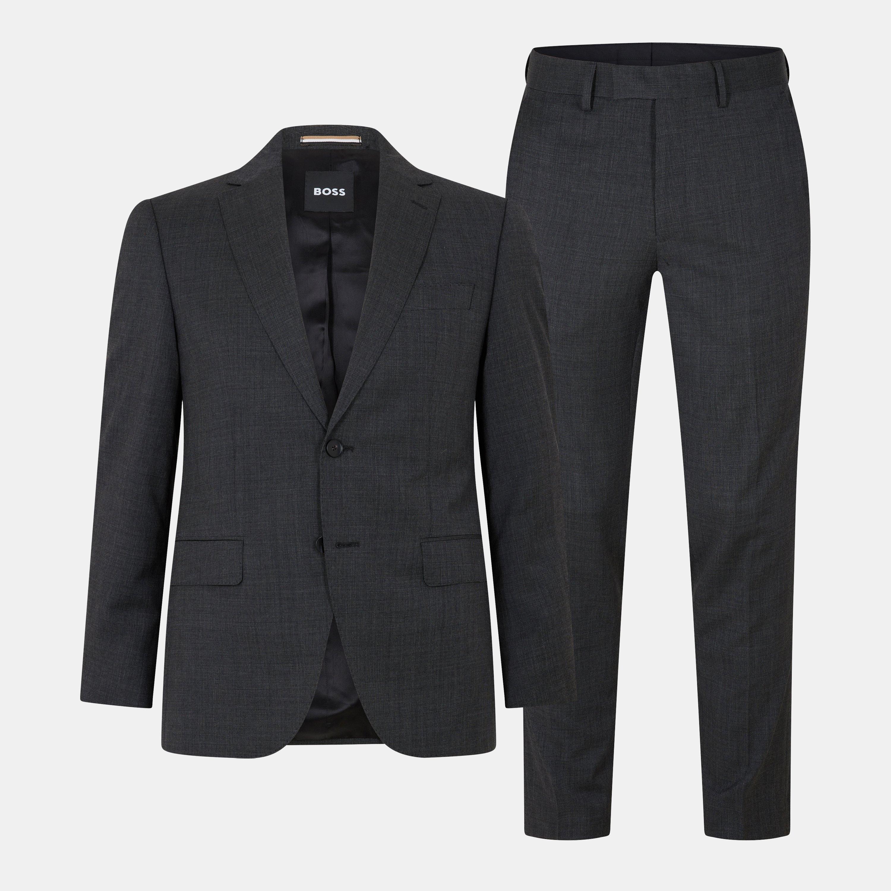 BOSS's Men's Jeckson designer Suit features a contemporary cut with structured shoulders and clean lines. The tailored design offers a classic professional profile suitable for both business office settings and dress occasions like weddings.