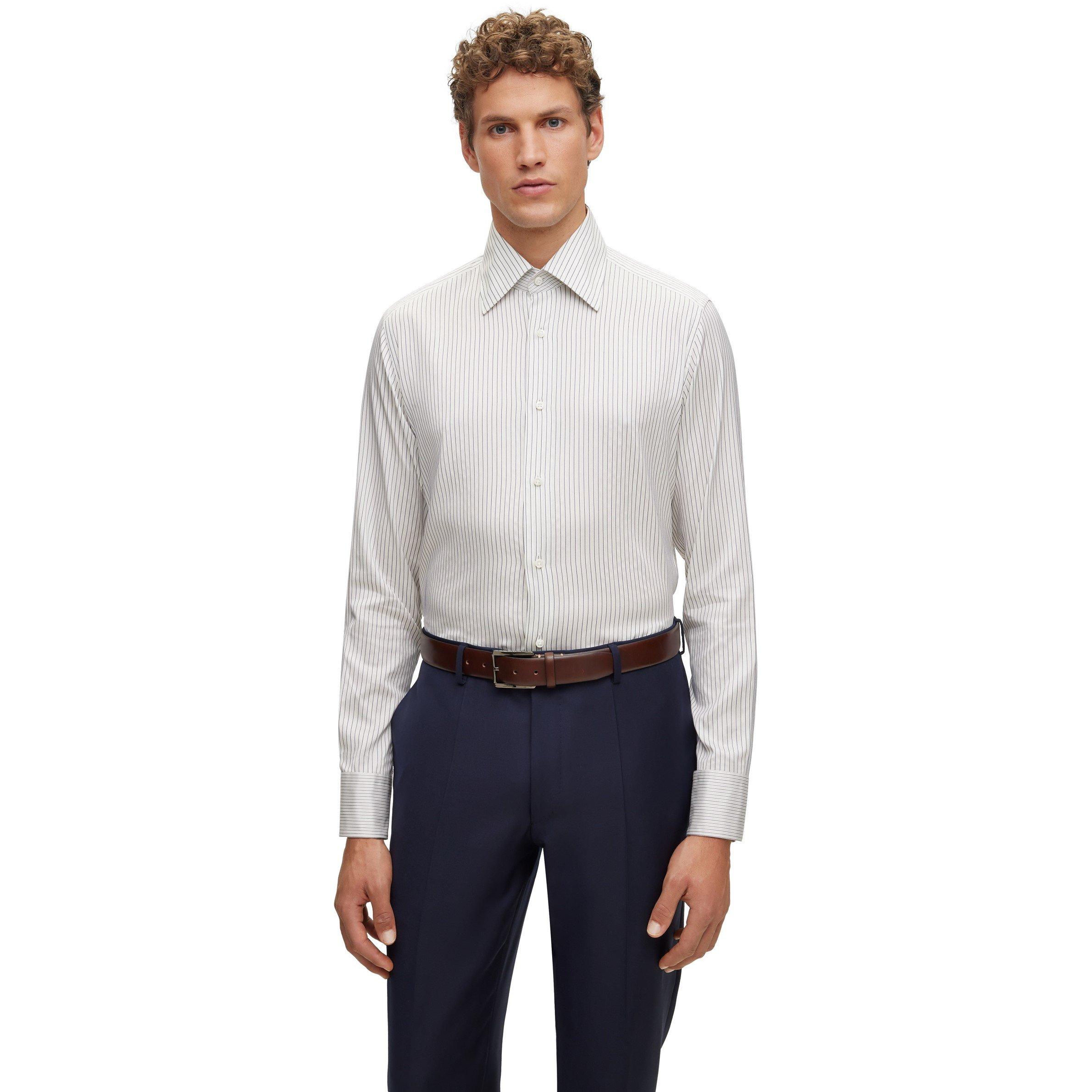 The BOSS Long Sleeve Plain Shirt delivers style with expert tailoring. This dress top features clean lines and a structured cut that looks sharp all day while maintaining the known BOSS quality.