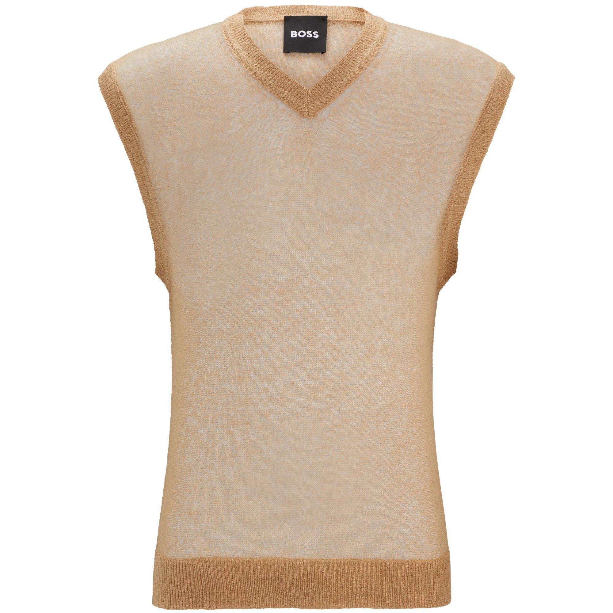 The BOSS Lucid Ribbed Knitted Top features ribbed knit detailing for a structured, defined shape. Contrast collar trim adds subtle finishing detail.