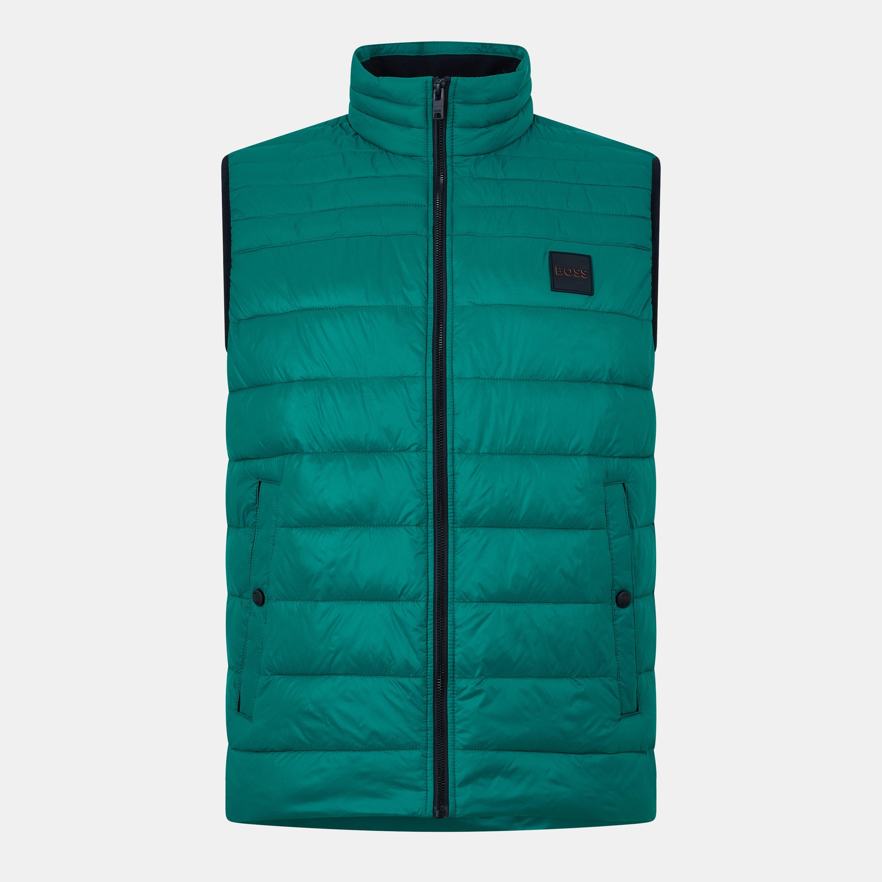 The BOSS Odeno Sleeveless Insulated Gilet delivers practical warmth with a structured shape. Featuring clean lines and lightweight insulation, this sleeveless vest transitions between outdoor settings and smarter occasions as a jacket alternative with subtle BOSS branding details, ideal for fashionable styling.