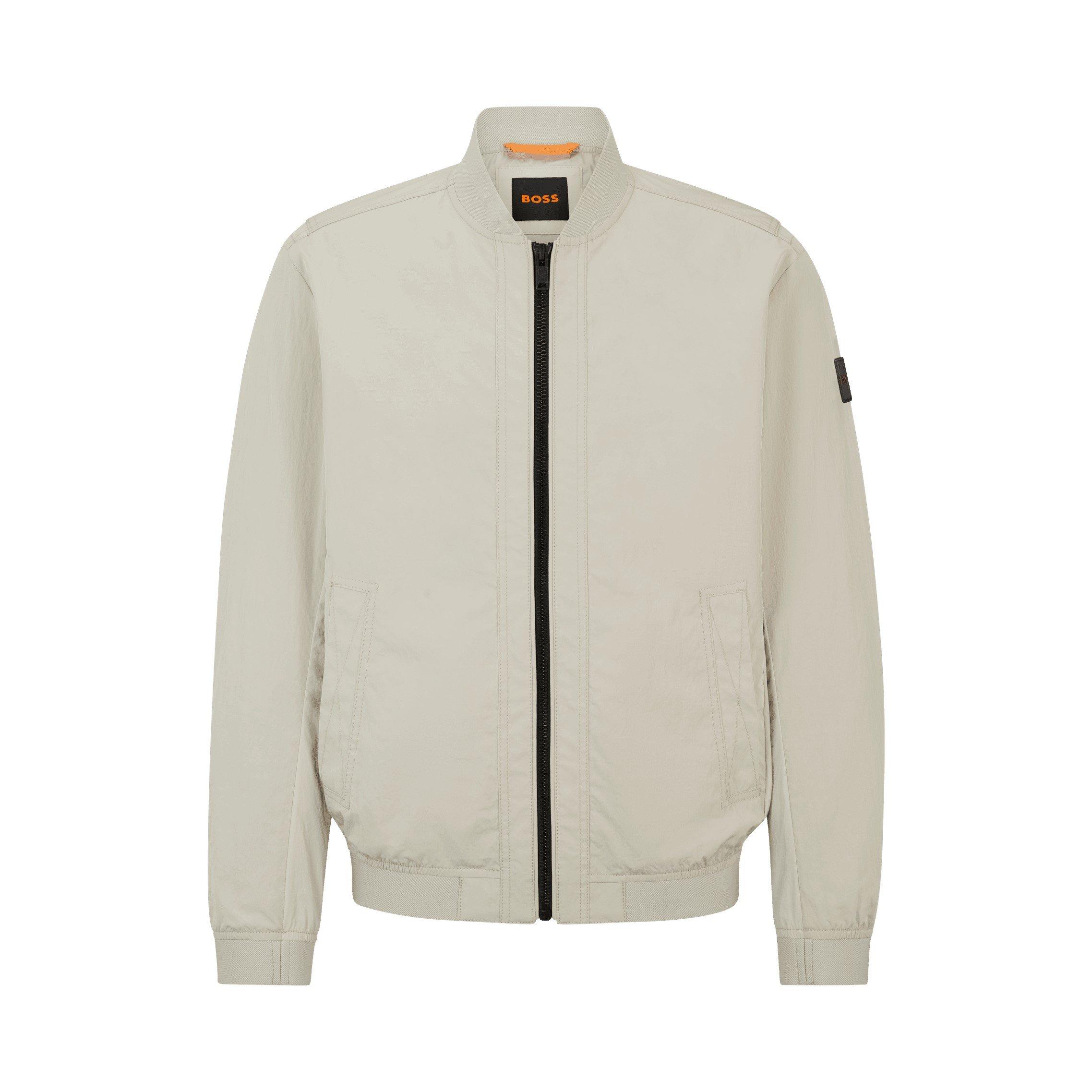 Update your outerwear collection with the BOSS Water Repellent Bomber Softshell Jacket. This regular-fit design offers sleek casual styling with practical weather protection, featuring a soft-touch shell exterior that maintains lightweight comfort while delivering essential wind and rain resistant performance for active lifestyles. Experience the quality that BOSS is known for in this outerwear piece.