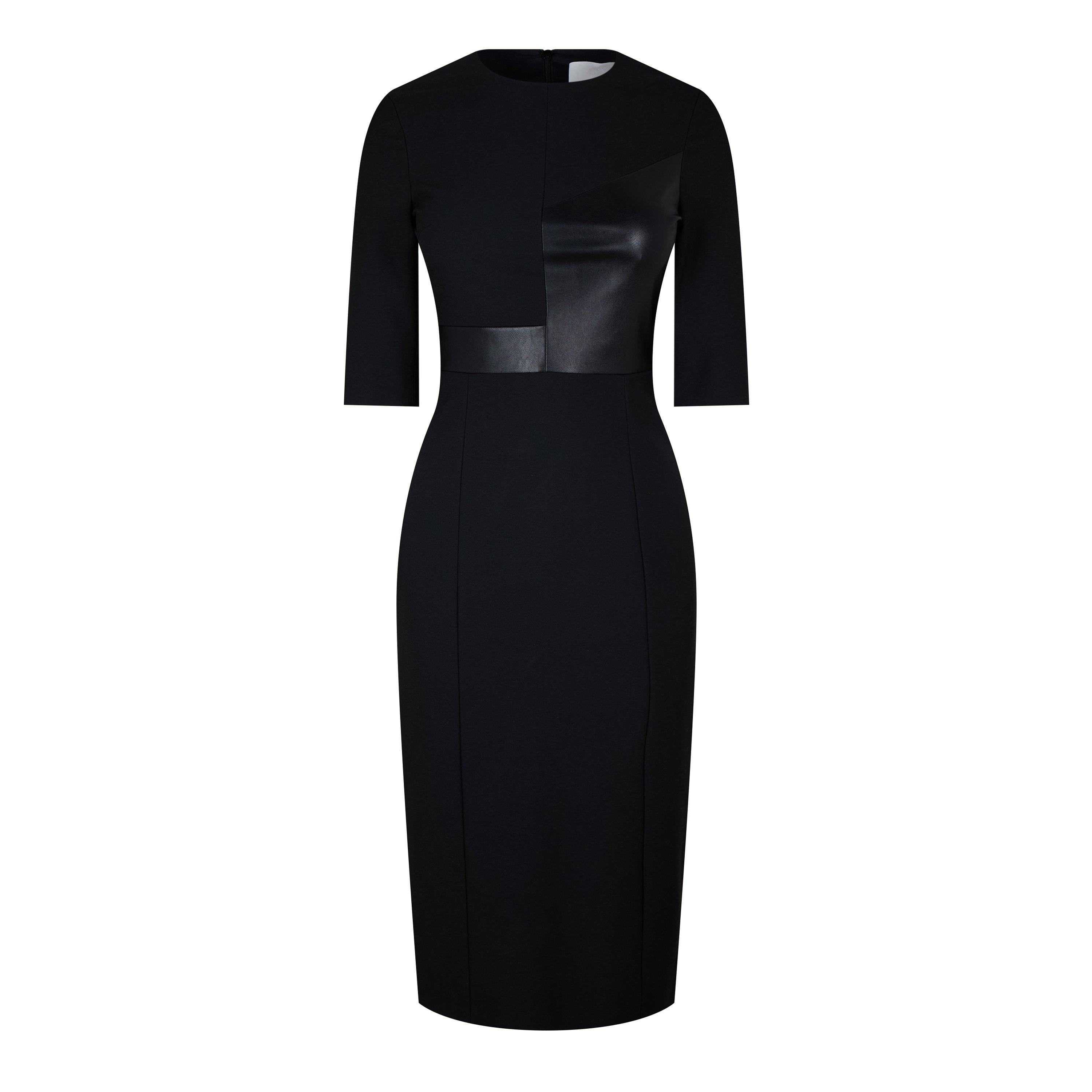 The BOSS Dezona Dress features a shift cut and clean lines. Structured detailing creates a chic look suited for work and evening wear.
