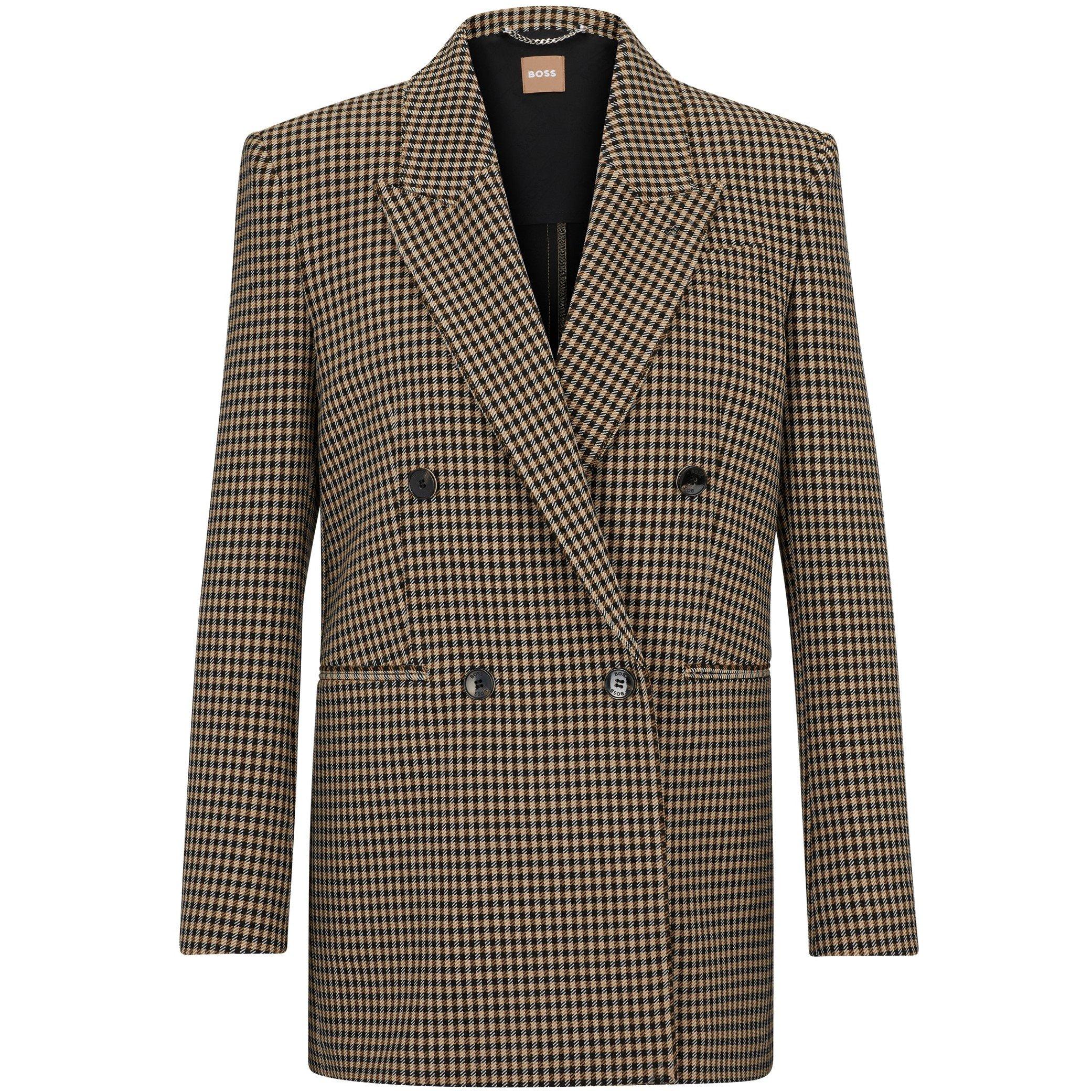 Precision tailoring meets feminine style in the BOSS Jekira women's suit jacket. Clean lines and structured design create a defined shape that works beautifully in professional environments with a distinctly BOSS aesthetic.