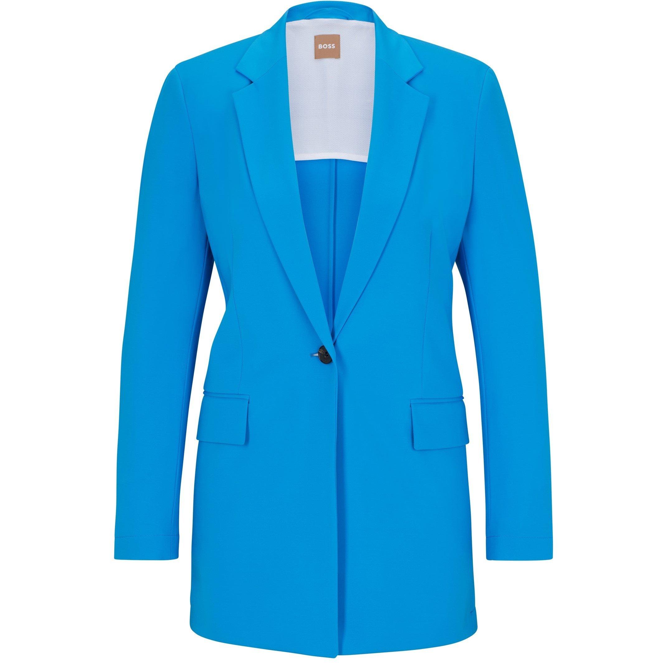 The Jexotta Blazer from BOSS delivers simplicity with modern proportions. This designer jacket showcases quality tailoring through a contemporary cut, with structured shoulders that create a defined shape ideal for office and business settings.