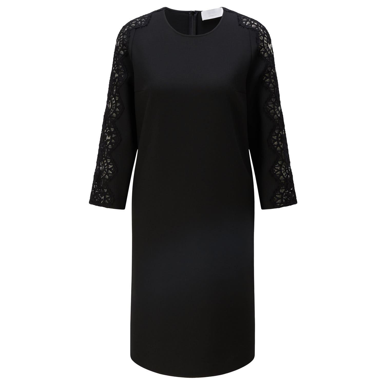 Women's Boss Dila Dress. Dress from the BOSS collection. Flared model made of smooth material.- Flared cut.- Round neckline.- Concealed zip fastening.- Three-quarter sleeves.- Model with inset pockets.- Smooth fabric.- Lace inserts. Material: 61% Polyester (Recycled) 26% Viscose 7% Cotton 6% Elastane. Ref: 50464334001.