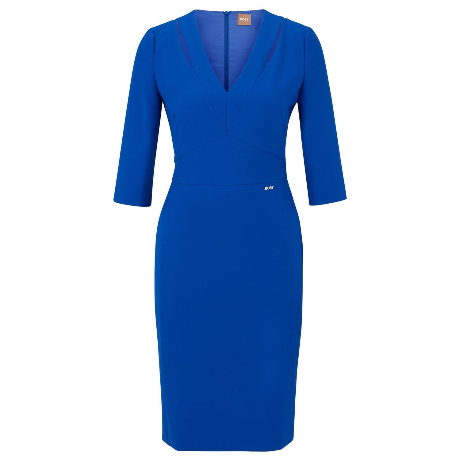 Womens Boss Dilira1 Dress in blue. - V- neck. - ¾ sleeve. - Zip fastening. - Boss branding. - Ref: 50483403463