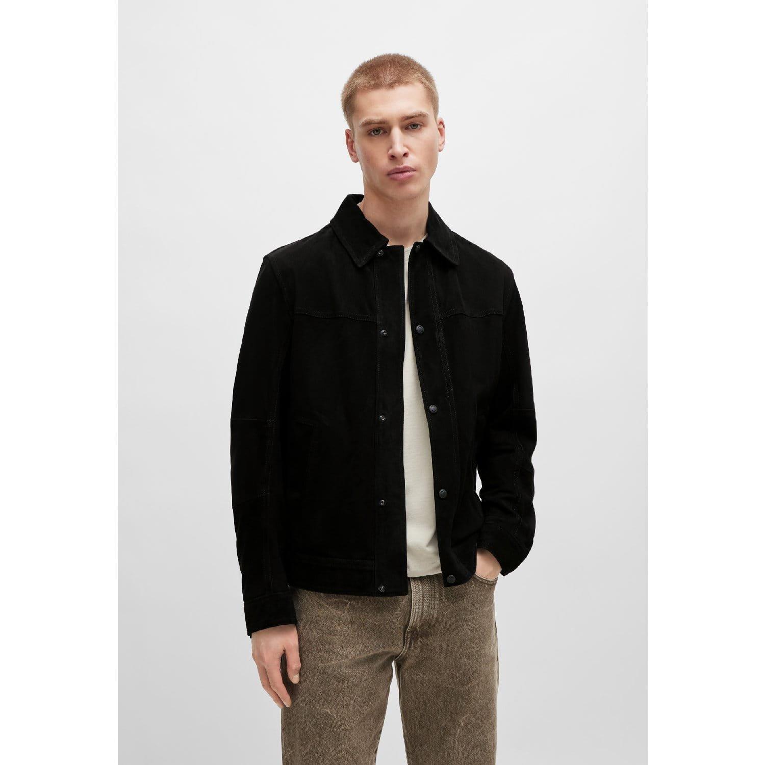 Mens BOSS Jomister Regular-fit jacket in nappalan-back suede in black