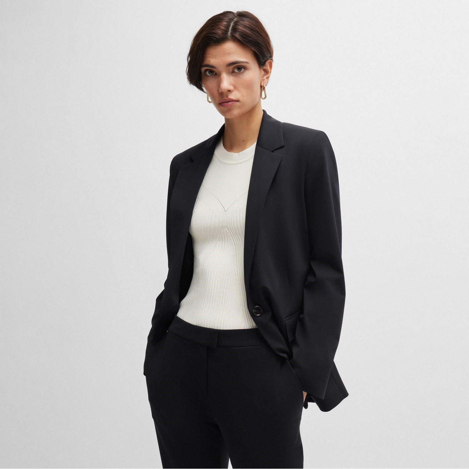 Womens BOSS Jupa Relaxed Fit Jacket in crease-resistant stretch jersey in black