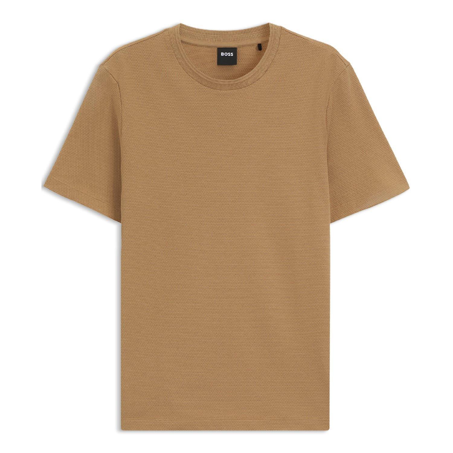 Mens BOSS Tiburt 240 Cotton Blend T-Shirt with bubble jacquard structure in medium beige.