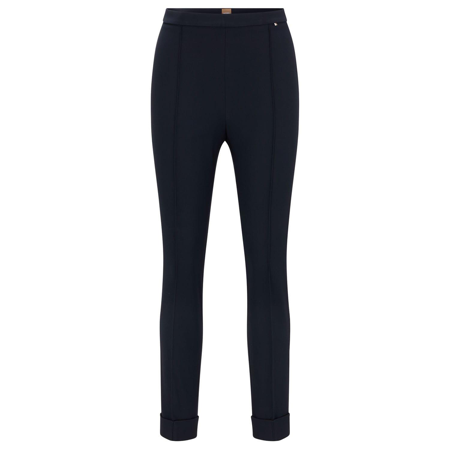 Elasticised waist. Pleat front. Regular rise. Tapered leg. Regular fit