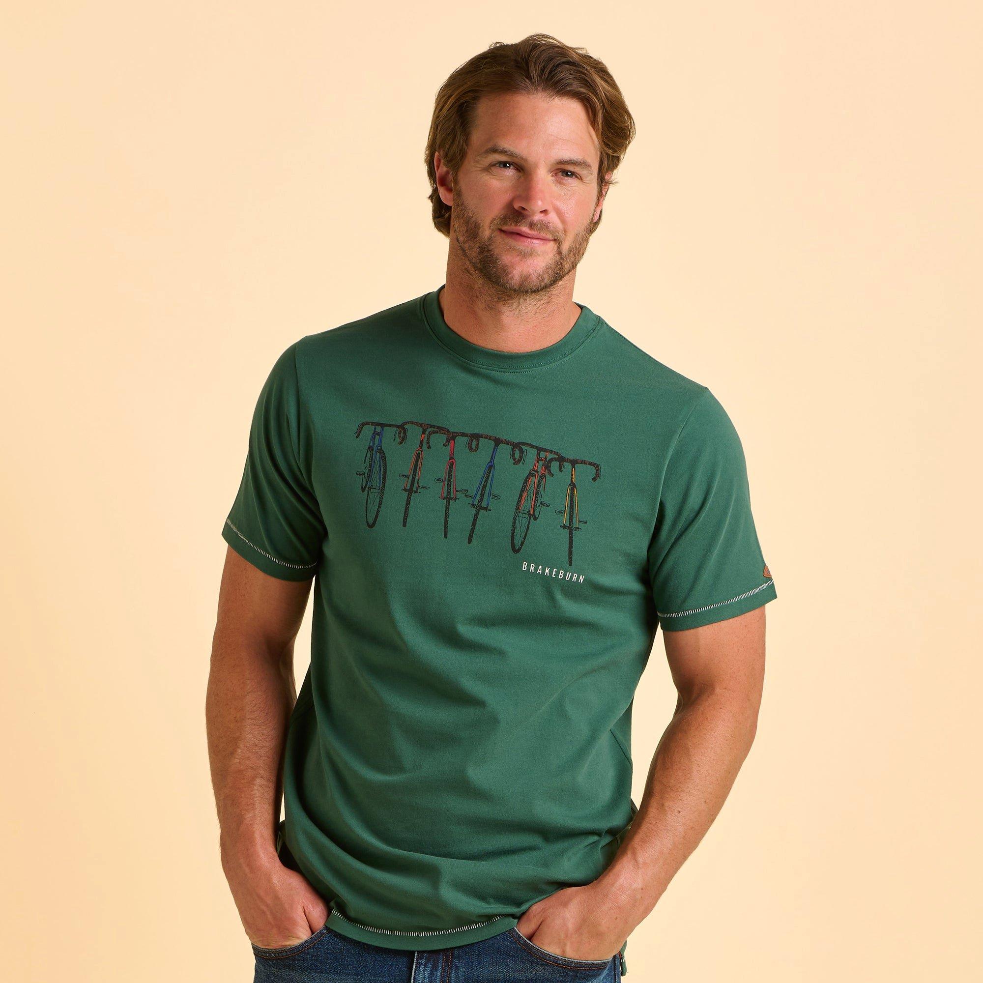 A top for the cycling enthusiast - this trail green Dolton cotton t-shirt does all the talking. With a comfy relaxed fit, graphic bike print and a contrasting stitching around the hem, it,ll be your go-to for those fast-paced days. Style with relaxed fit jeans and an open shirt.100% Cotton