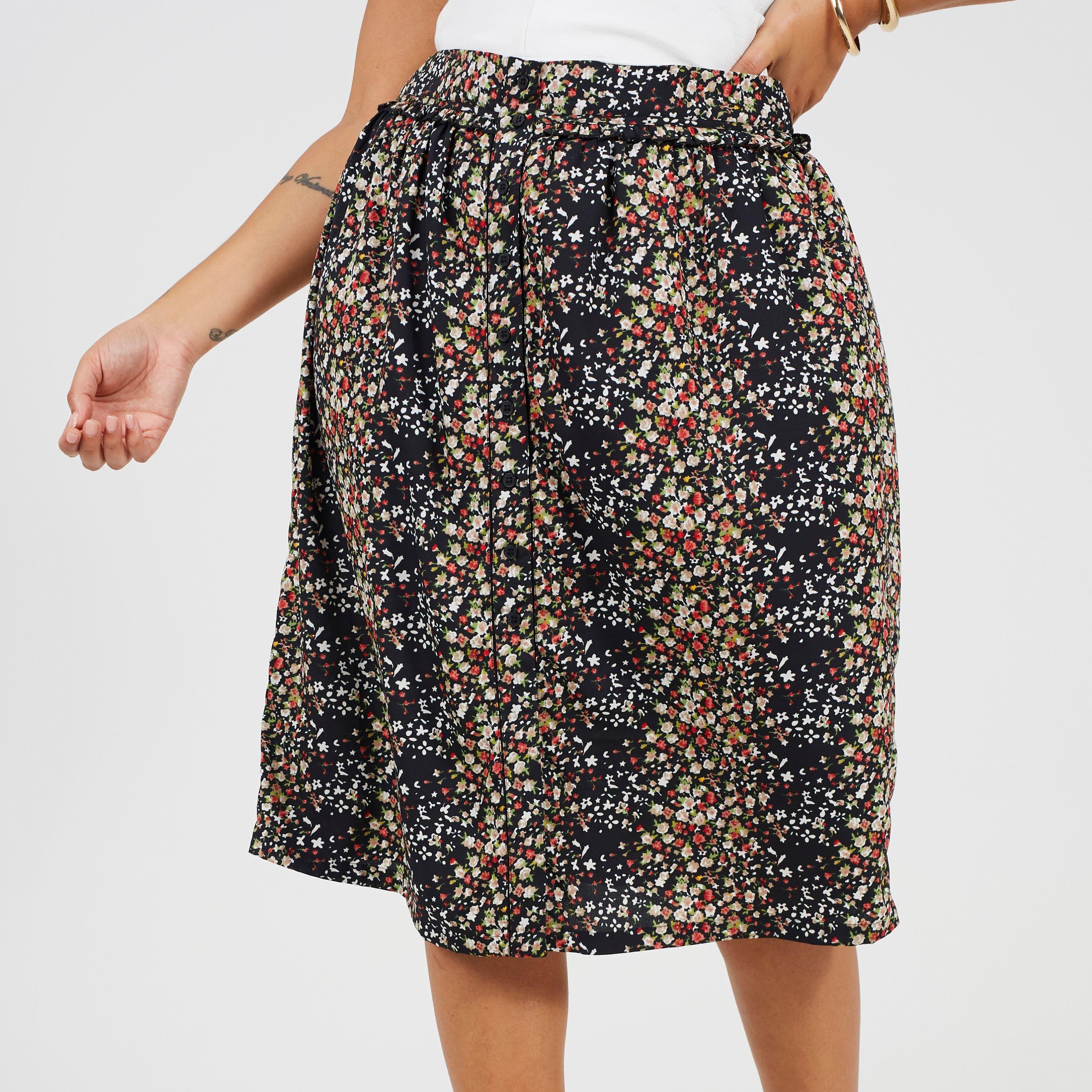 Brave Soul Women's skirt. Plus size, midi length, high waist with all over graphic print