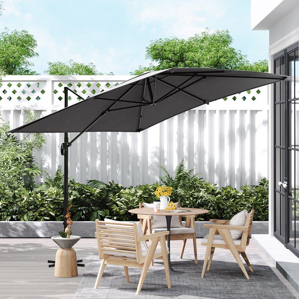 The overhanging parasol is more than just a practical solution to the hot sun. With an expansive 2.5-metre canopy, this cantilever parasol is perfect for sheltering outdoor sofas, dining furniture, and bistro sets, allowing you to enjoy the warm weather all day long. Its simple wind-up crank function makes it easy to open and close with minimal effort. Please note, for safety, the parasol should be closed during severe weather conditions like strong winds or heavy rain.