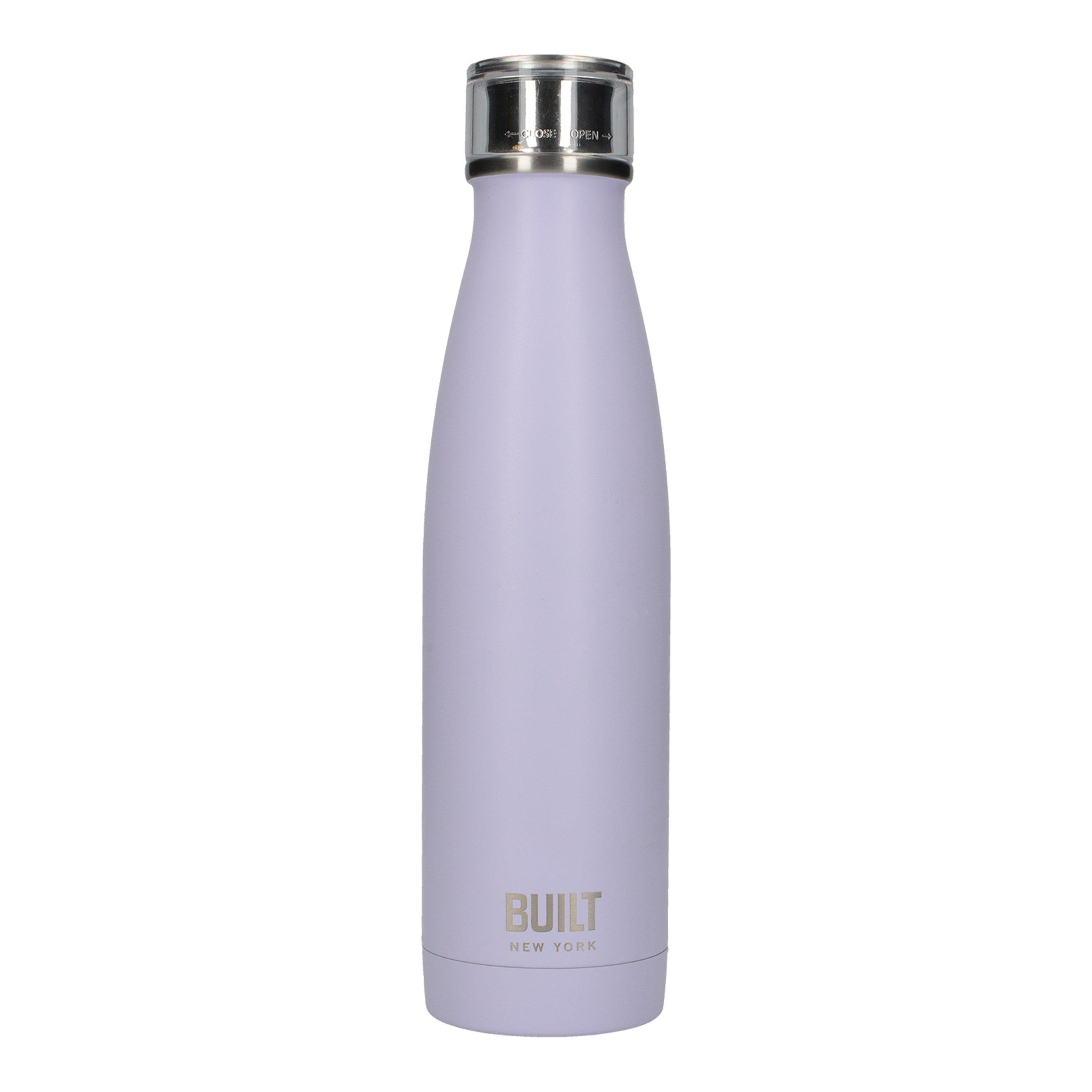Function meets style with this attractive insulated water bottle. Produced from top-quality, highly durable materials, these versatile flasks are more than up to the challenge of keeping pace with the busy commuter, frequent gym-goer, or the dedicated hiker. Double-walled vacuum insulation preserves drinks, without affecting the outer temperature. Fill this drinks bottle with a generous cupful of hot tea, coffee or soup, and it will stay warm for up to 6 hours without burning your fingers. Iced tea, water, and other cold drinks remain refreshingly cool in this handy metal bottle, too. Looking as good as it performs, it sports a lavender exterior, while its tall sleek shape will slip easily into any bag or car holder.