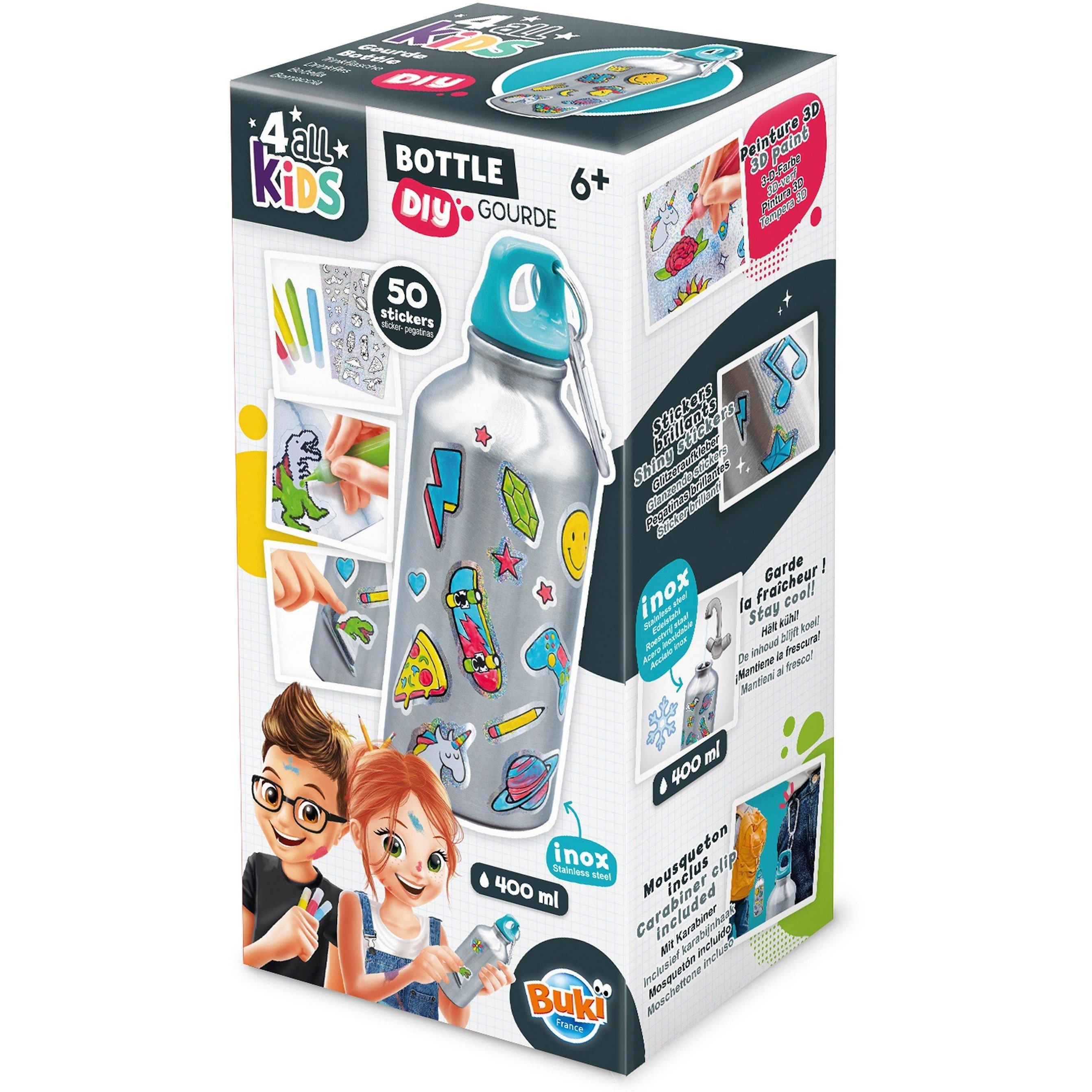 Turn this blank bottle into a masterpiece of aqua excitement! Add stickers, colors, and creativity – the sky's the limit!