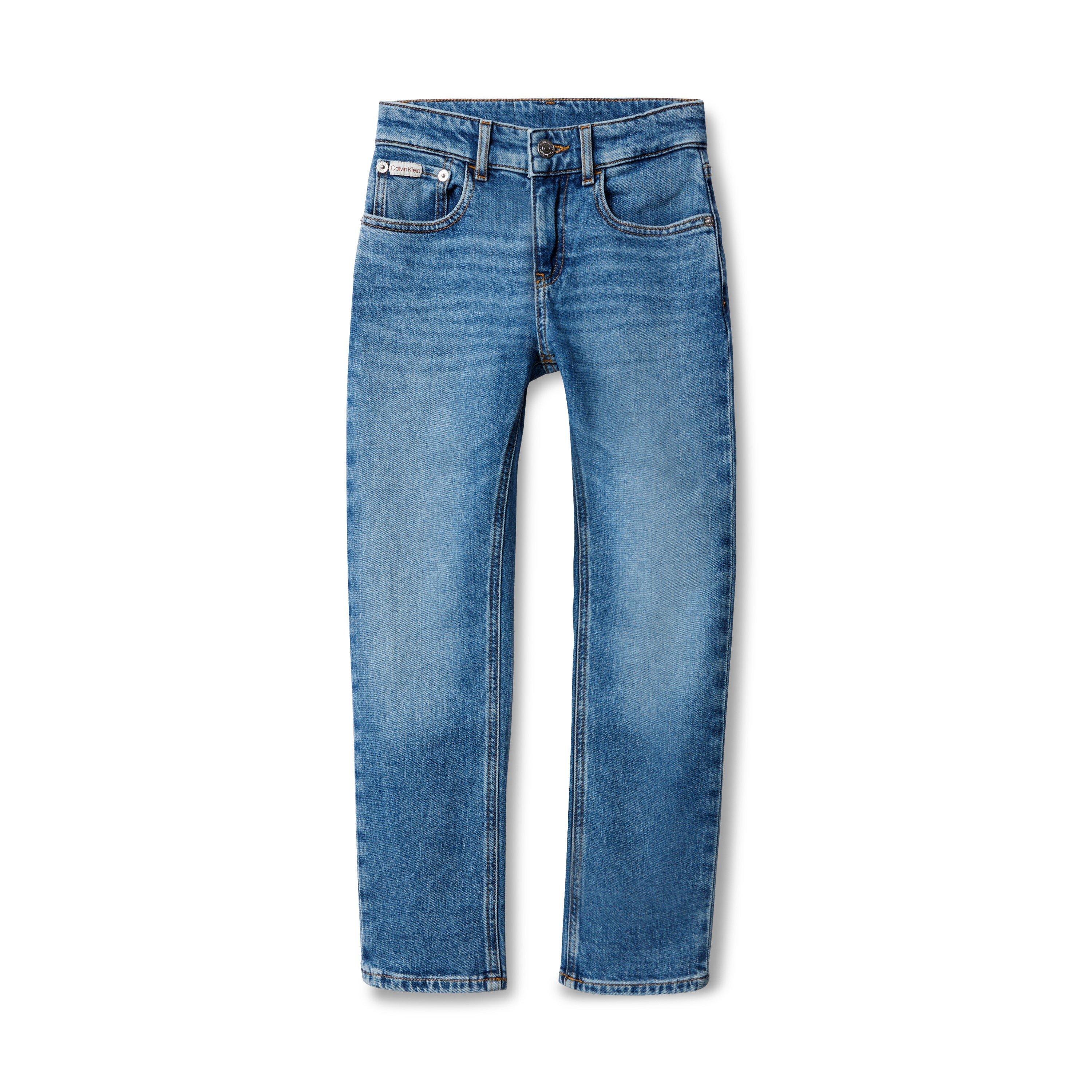 Calvin Klein Jeans Kids' Straight Leg Jeans offer classic appeal with contemporary comfort for growing children and youth wardrobes. Made with the brand's well-known quality, these jeans feature a classic straight cut shape that balances a sleek structure with everyday casual wearability, creating an ideal fit for both boy and girl fashion preferences and active children.