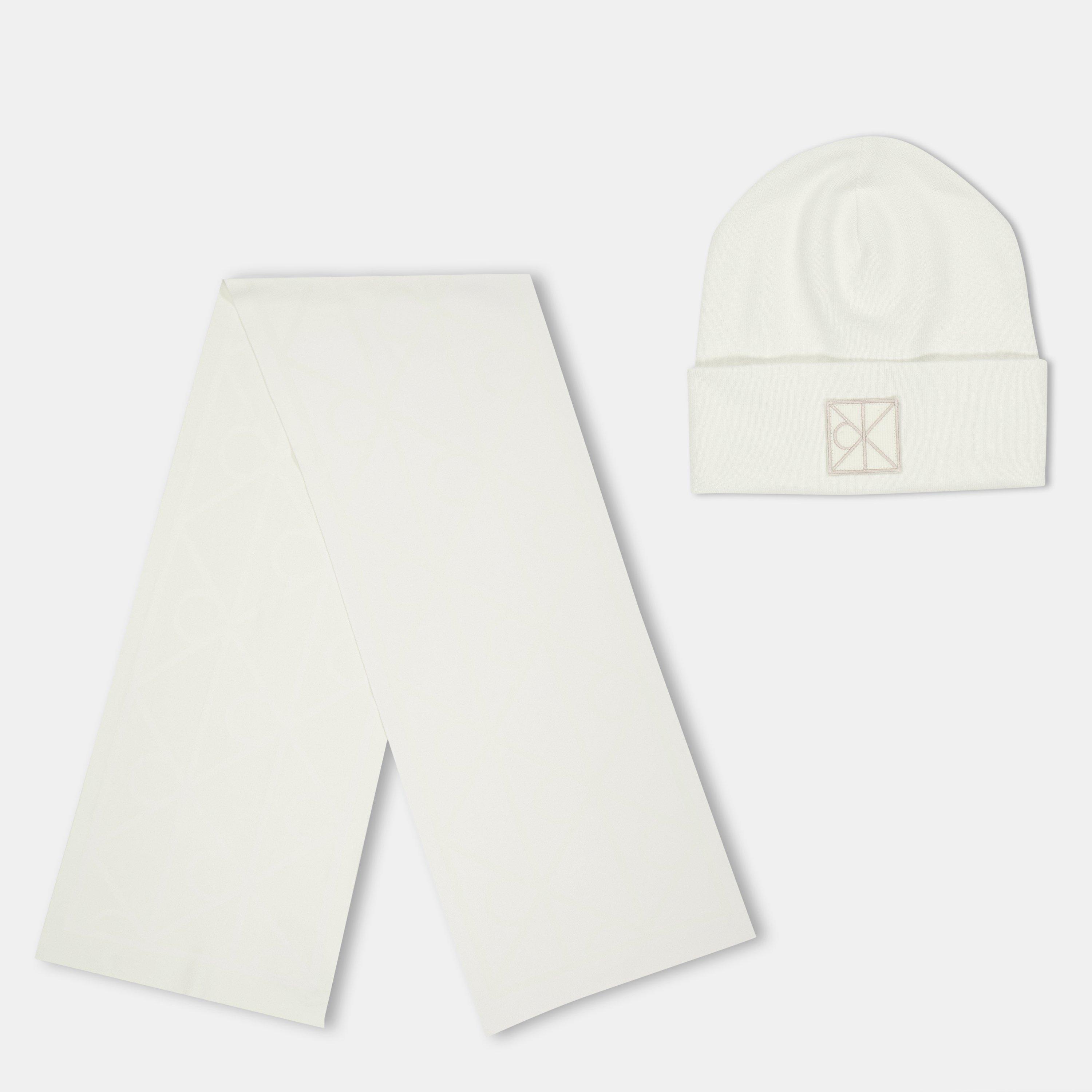 Calvin Klein Emblem All Over Print Winter Set pairs essential cold-weather accessories with a fashionable look. This coordinated hat and scarf pairing features the CK emblem pattern, offering both warmth and brand recognition for seasonal wardrobes, making it an ideal gift choice.