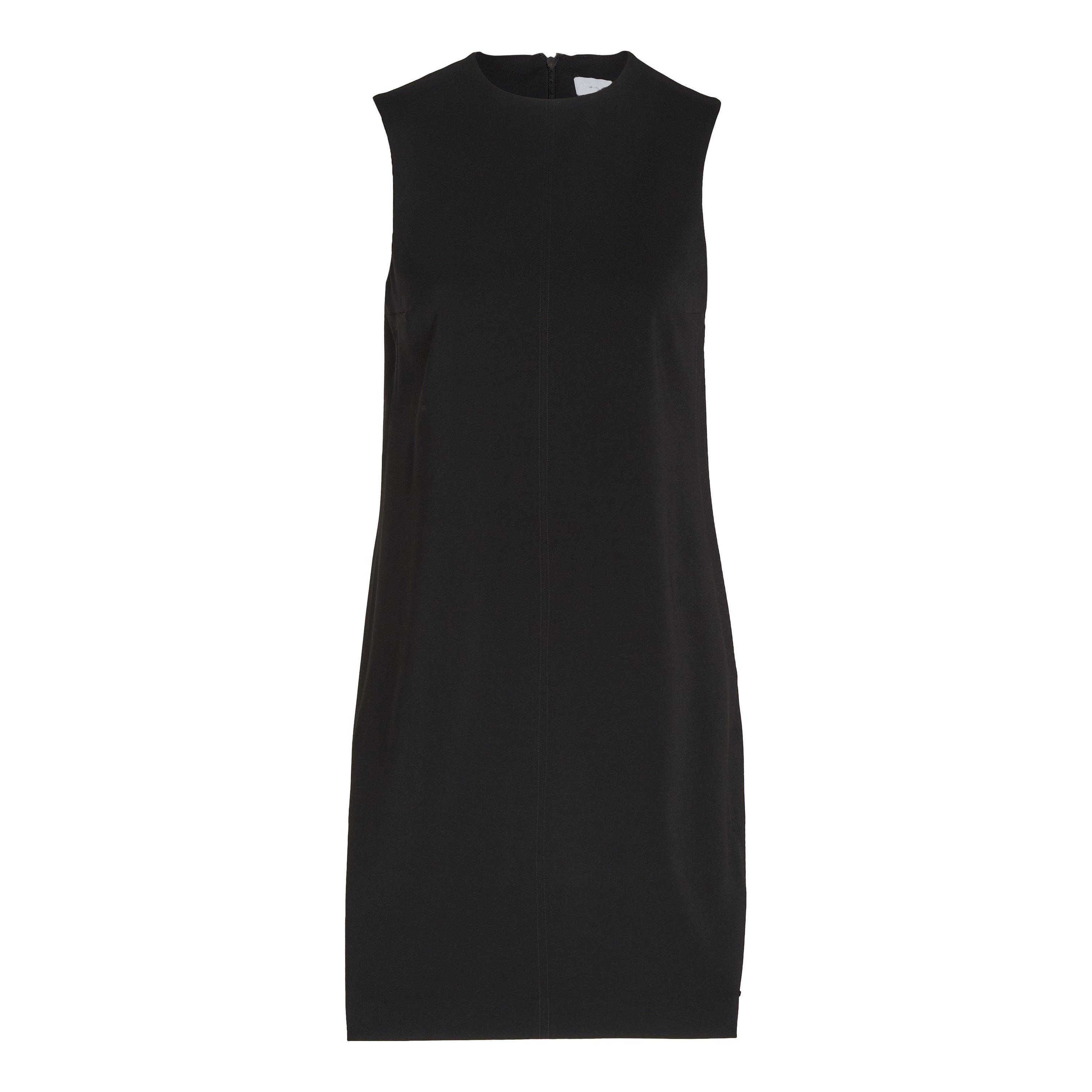 This exquisite dress, crafted from a luxurious wool blend, combines comfort and refinement seamlessly, ensuring you feel empowered and confident. The knit fabric of the dress provides a figure-flattering slim fit, accentuating your natural curves. Its knee-length silhouette exudes sophistication, making it versatile for professional workwear and glamorous evening attire. The crew neck and sleeveless design enhance the dress's polished aesthetic, while the slip-on style ensures effortless elegance. Impeccable attention to detail is evident in the single pleat detail to the front and rear, adding a touch of texture and dimension to the dress. Adorning the nape of the neck is a silver-tone logo plaque, embroidered with finesse, showcasing the brand's commitment to excellence. The Calvin Klein Crepe Shift Dress offers limitless styling options, allowing you to create various looks. Whether paired with pumps and a blazer for a business meeting or statement jewellery for a night out, this dress is a versatile must-have. Composition: 48% Wool, 29% Cotton, 22% Polyamide, 1% Elastane. Care: Machine washable, see care for further instructions.