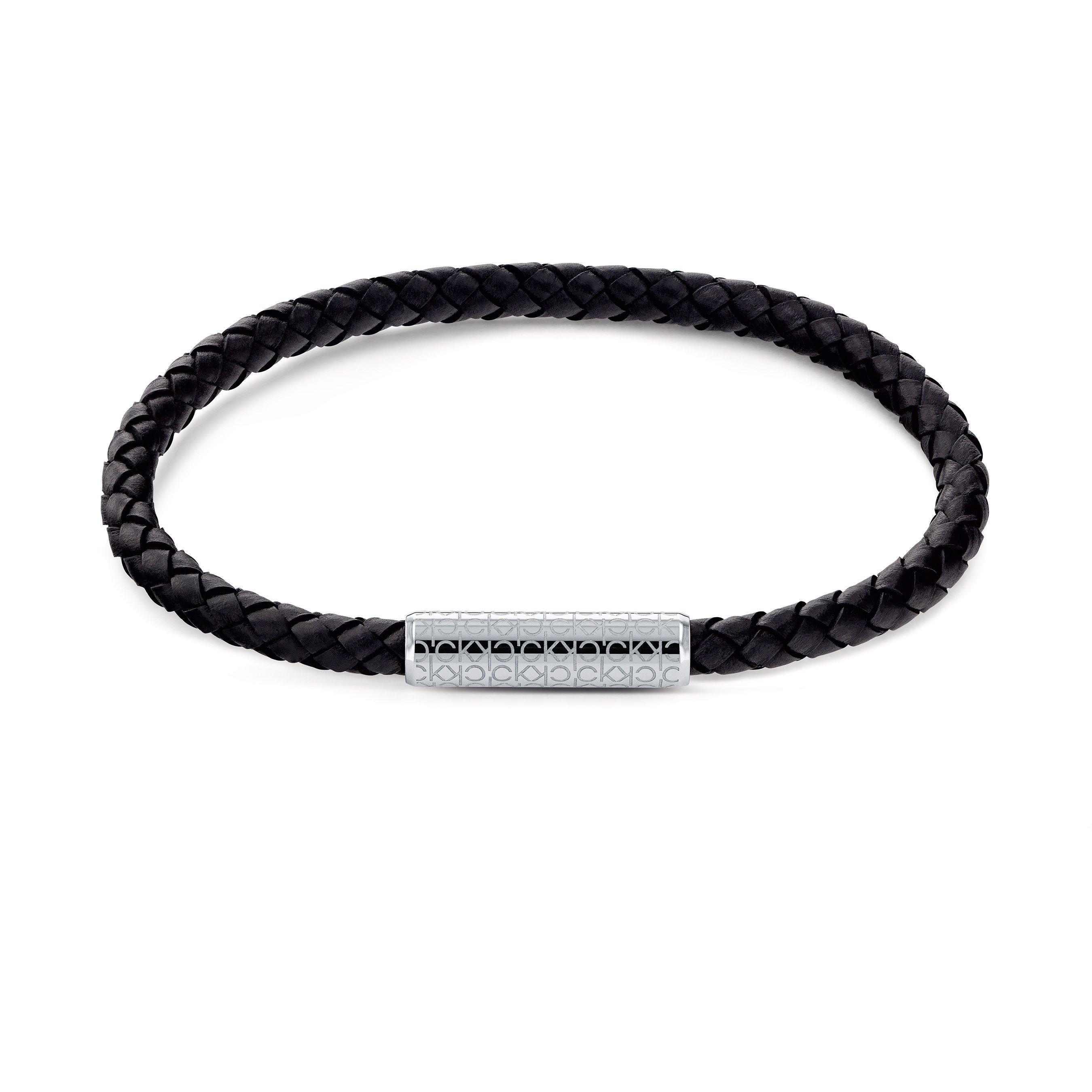 /Home/Accessories/Jewellery/Men's Jewellery/Gents Calvin Klein black leather and stainless steel single wrap bracelet.