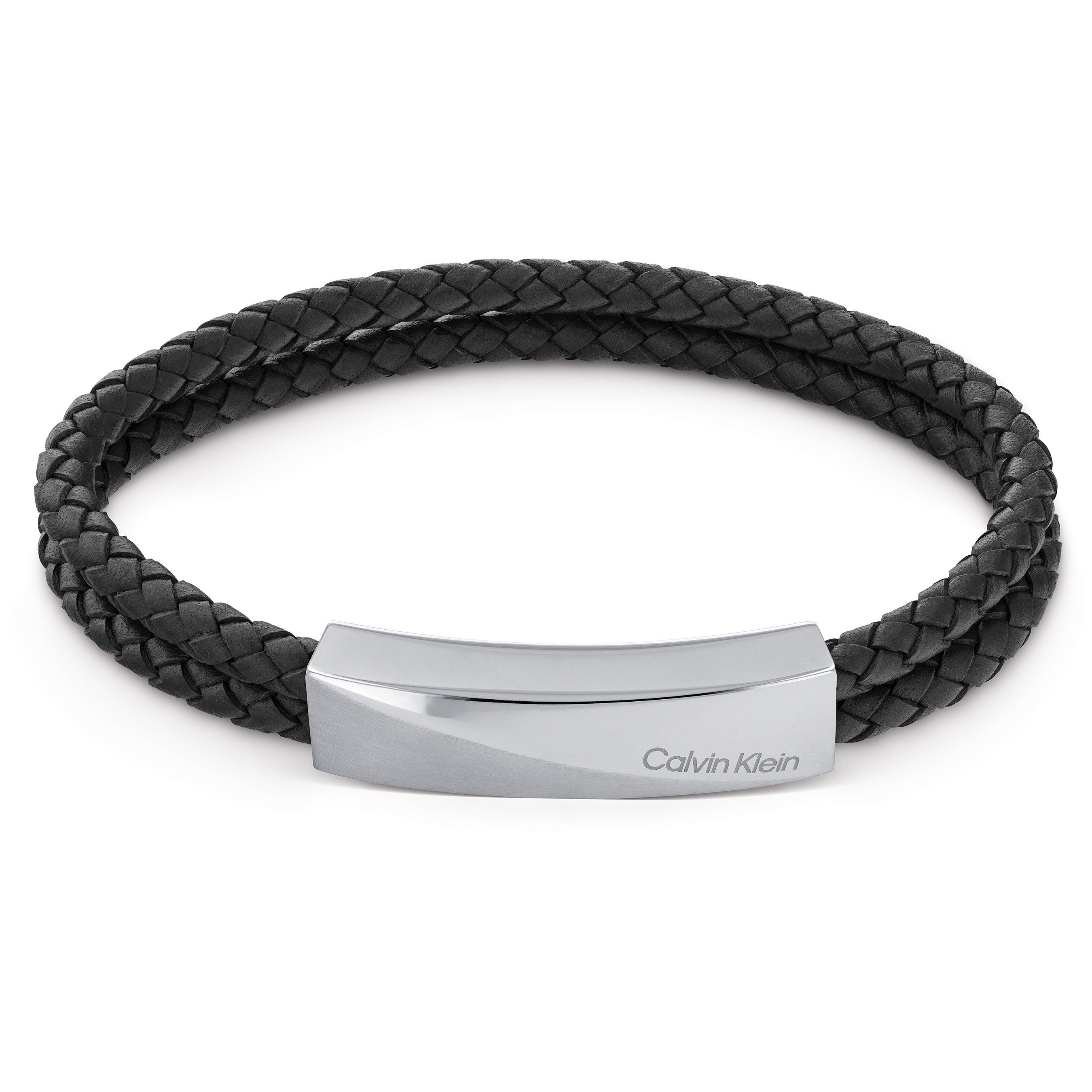 Calvin Klein Gents Calvin Klein leather and stainless steel double strand bracelet
