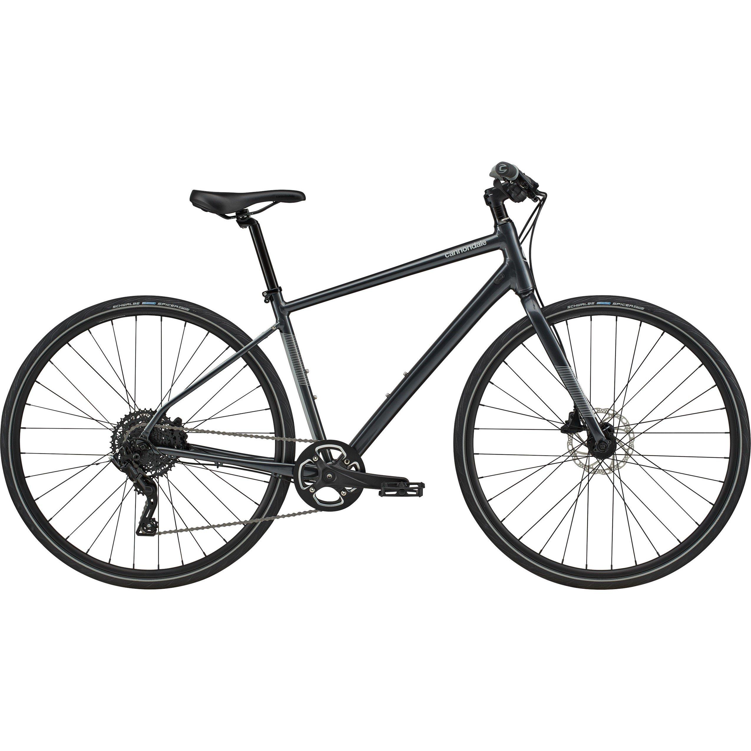 Highlights Lightweight aluminum frame w/ 360° reflective accents Easy-to-use, wide-range 9-speed gearing w/ hydraulic disc brakes Integrated connectivity with Cannondale App