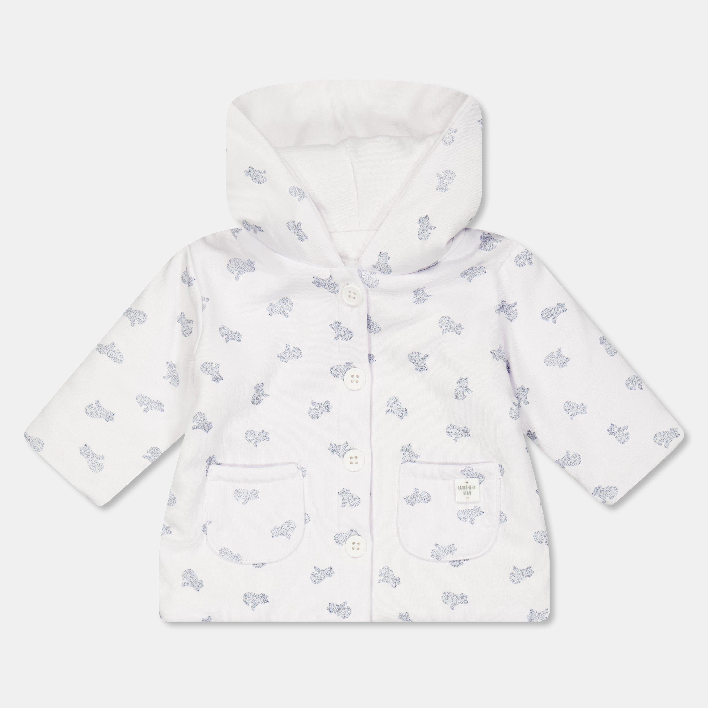 - Practical hood and secure fastenings provide full coverage in this jacket