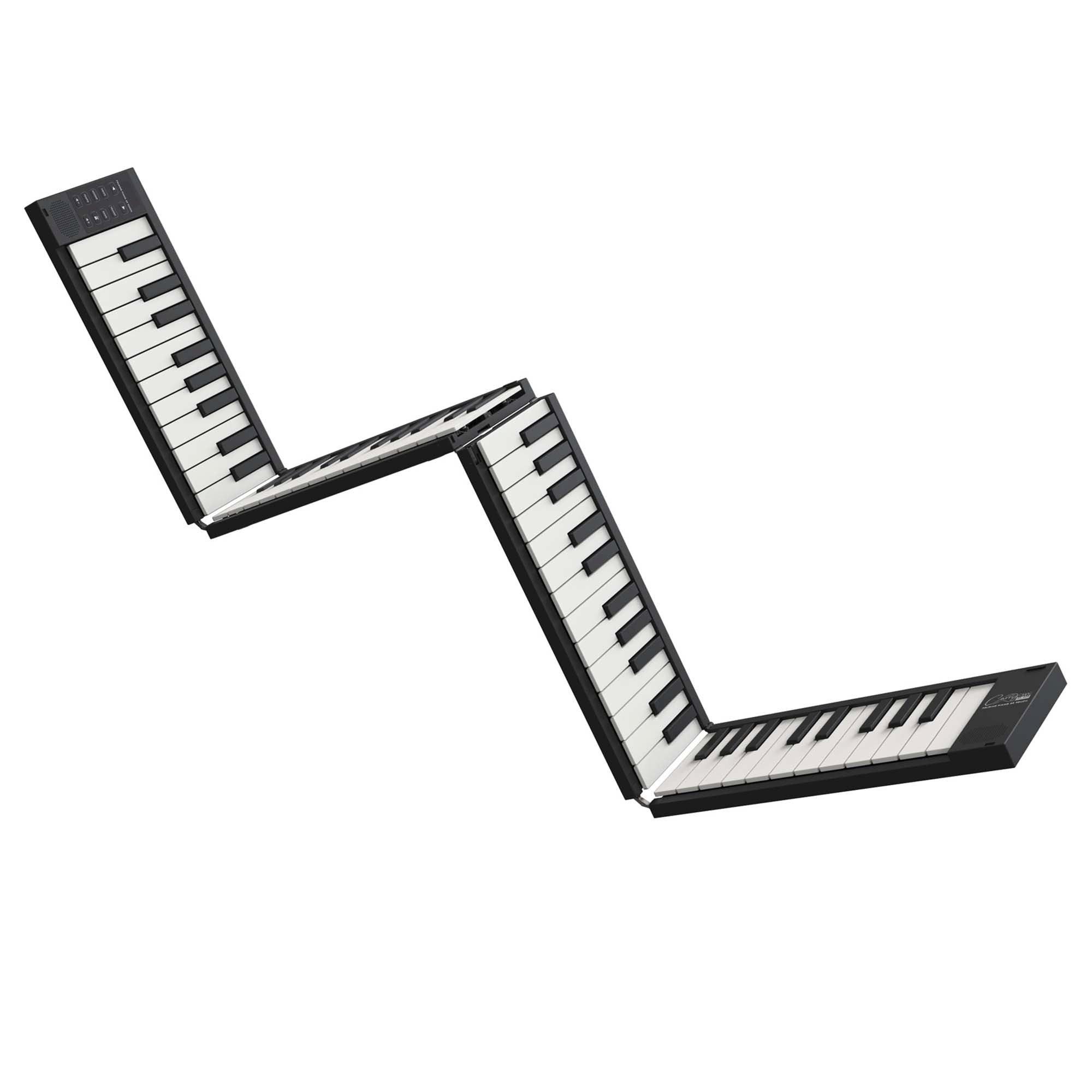A lightweight and compact design that unfolds into a full length 88-key piano Unique design that provides excellent touch and feel Dynamic and expressive playing from the velocity sensitive keys MIDI over USB for direct-to-device functionality without the need for a separate interface MIDI over Bluetooth for direct connection to your mobile device, the ultimate portable rig Built-in USB rechargeable battery gives up to 8 hours of life on a full charge, for extended playing time wherever you are Listen live with the built-in stereo speaker system Stereo 3.5mm headphone output for high-quality,.silent, practice Built-in Sound Engine with 128 high-quality Voices 128 custom accompaniments, offering a variety of playing style practice Sustain pedal and handy travel tote bag included