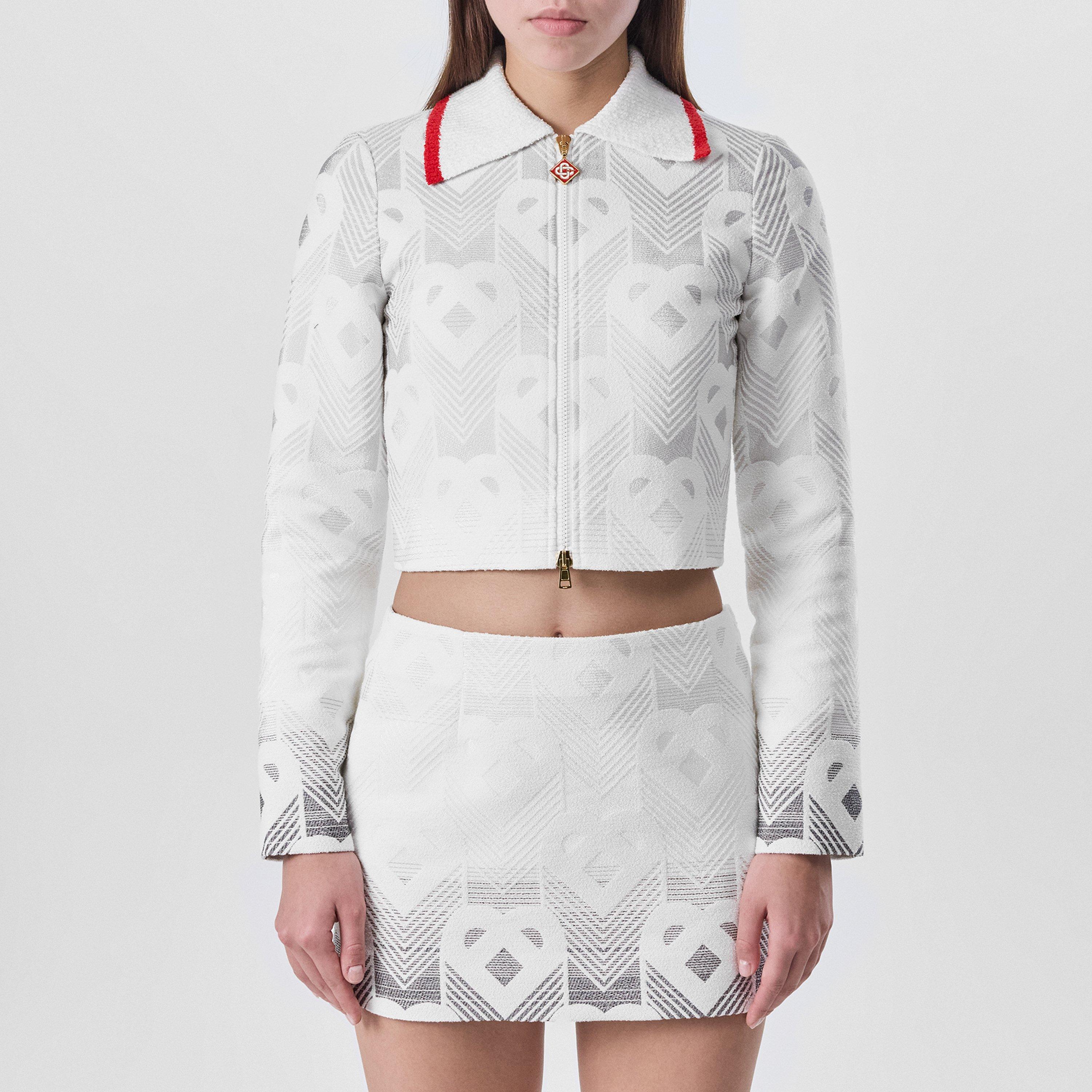 Update your style with the Casablanca Monogram Long Sleeve Boucle Jacket. This piece features an all-over monogram motif and classic collar design, merging resort-inspired comfort with a smart design in a regular fit with full zip fastening that's great for travel.