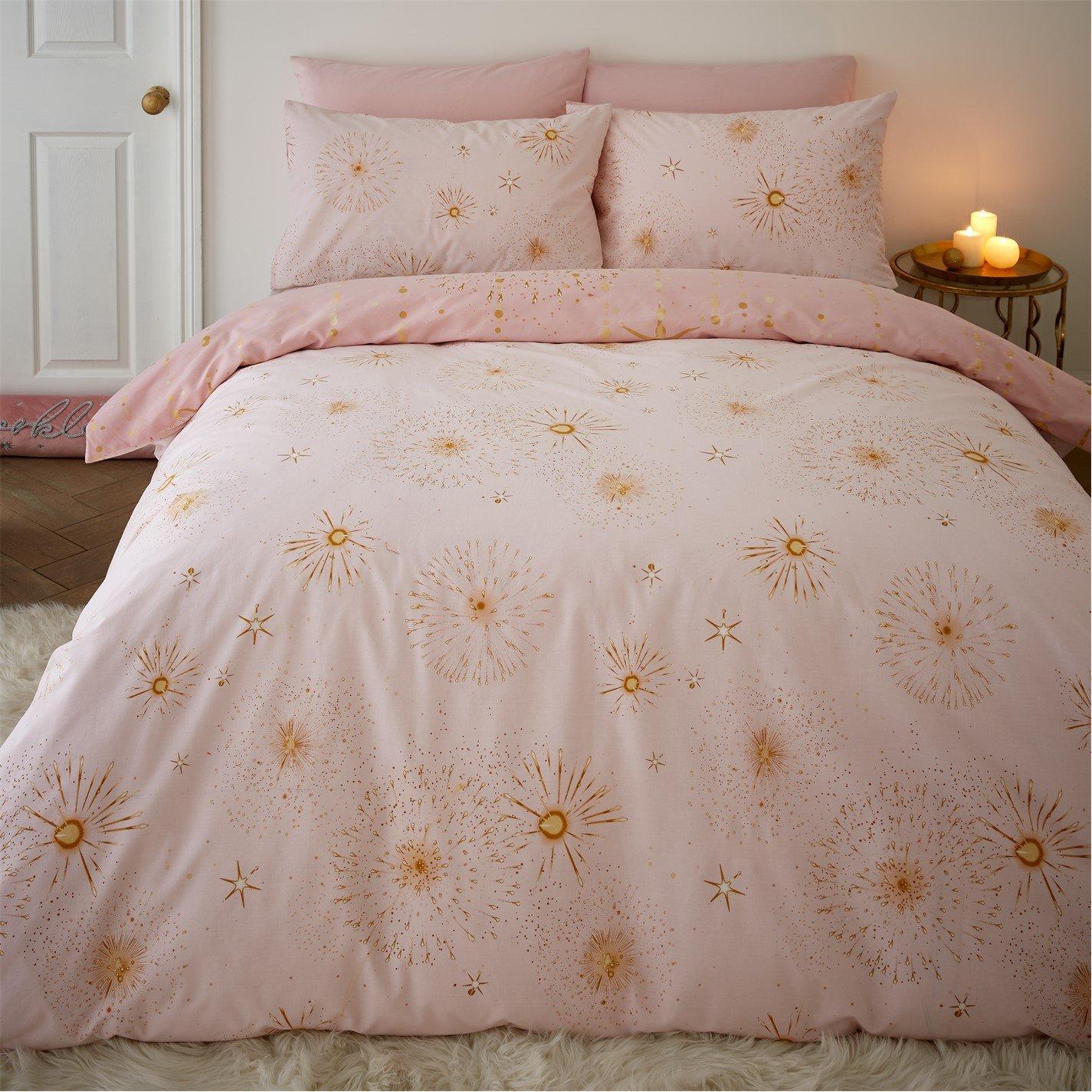 Sparkle all the way!. This contemporary and festive design is perfect for those who appreciate a touch of sophistication during the holidays. Flip it over for an all-over firework reverse, adding a burst of excitement to your decor. Created from easy-care recycled polyester and soft cotton, perfect for everyday use during the holiday season.