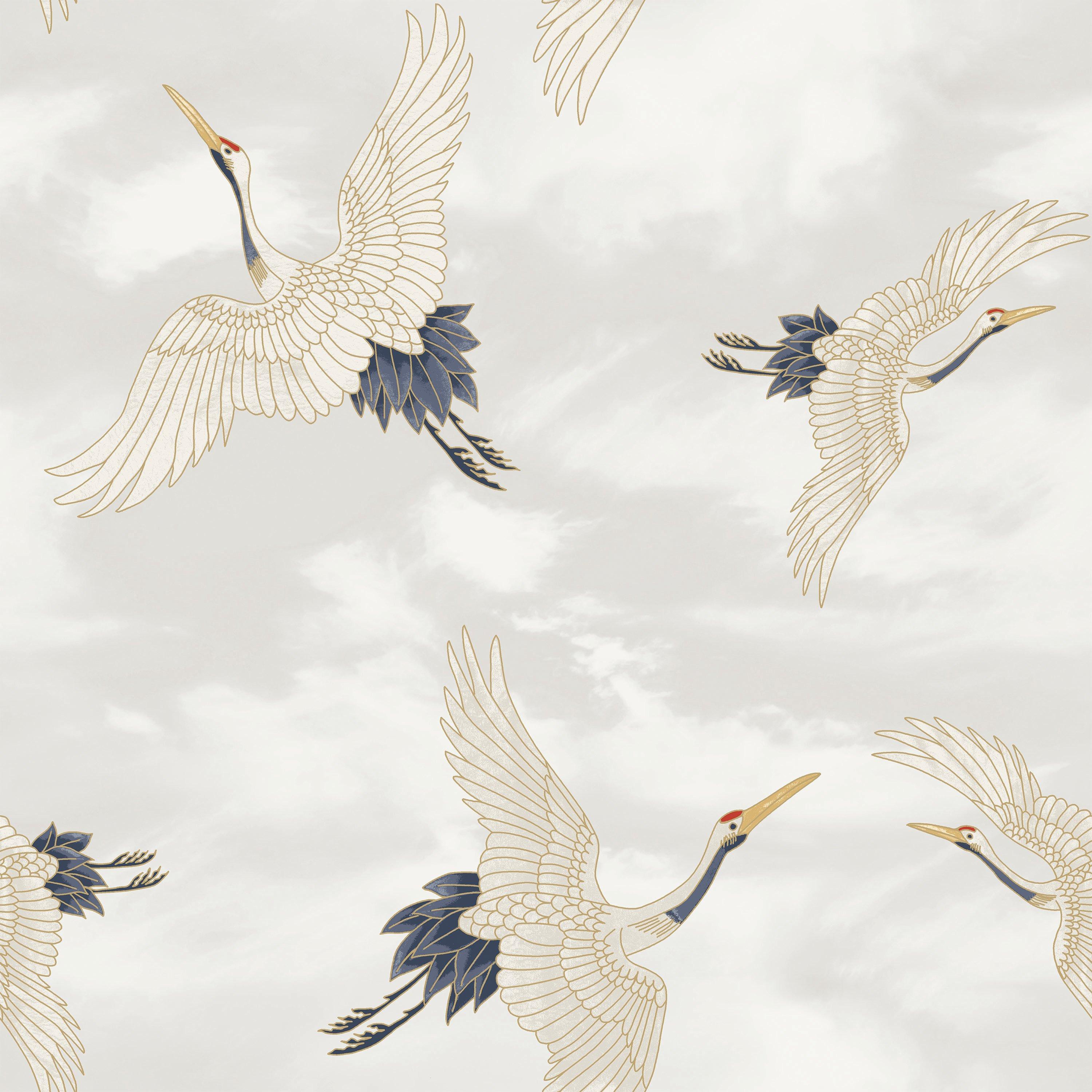 Bring the blissful beauty of the orient into your home with this statement crane wallpaper in soft white tones Paste Adhesive Application: provides a strong and durable bond between the wallpaper and the wall surface Wipe Clean: To gently clean marks Wet Removable: Easily removable reducing any residue or damaging the underlying wall surface. Size: Roll Size- 1005m x 53m (11yds x 21ins)