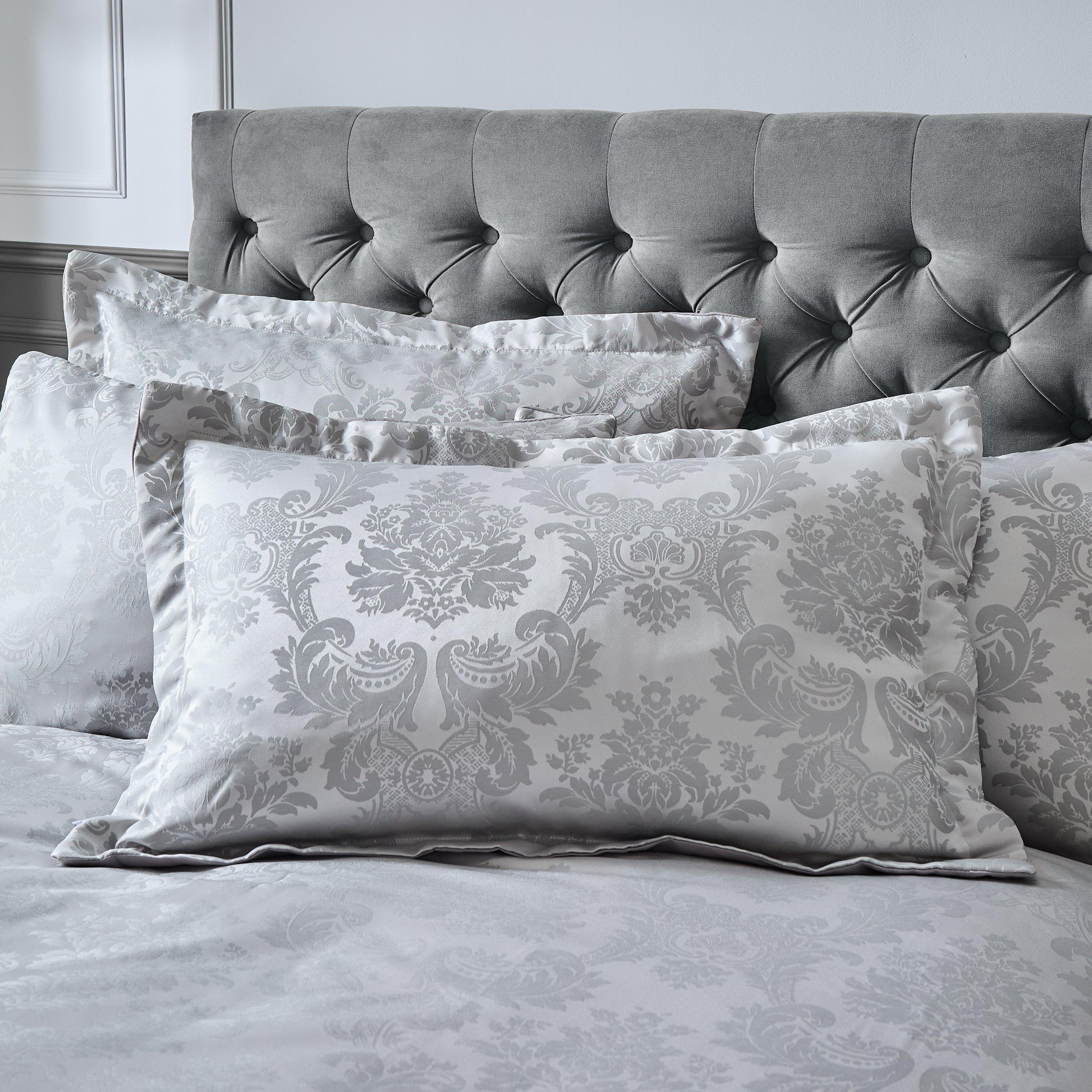 Indulge in the timeless elegance of our beautiful damask jacquard pillow sham pair, crafted to elevate the ambiance of your master bedroom. Boasting intricate scrolling leaf patterns that have been woven to add a touch of opulence to your personal sanctuary.