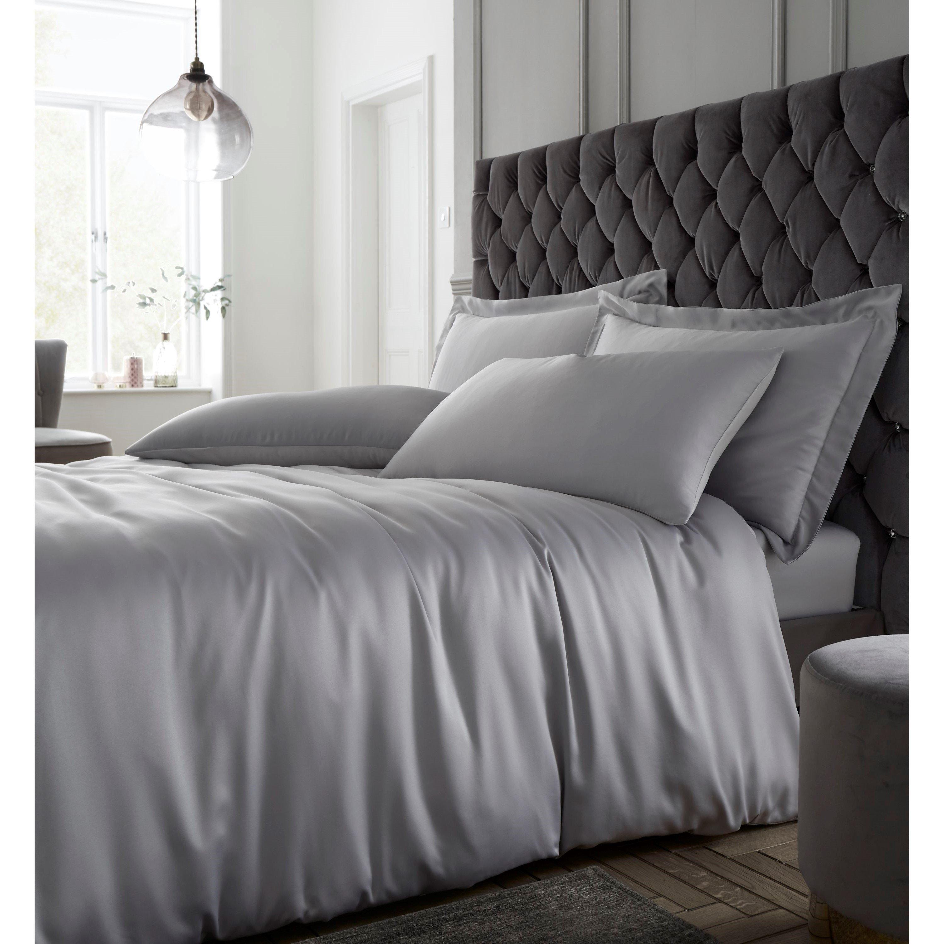 With its luxurious sheen, this plain satin collection add a chic style to your home. The fibres are woven to give the fabric its silky texture and also a soft touch for a restful nights sleep. Silky Soft Satin: A smooth and lustrous handle for an elegant feel. Crafted: Recycled polyester blended with soft cotton reverse. Easy to Care: Suitable for machine washing and tumble drying. Button Fastening: To keep your duvet securely in place. Envelope Closure: Providing a secure and snug fit for your pillow. Sizes: Single - 1 pillowcase Double - 2 pillowcases King - 2 pillowcases Super King - 2 pillowcases
