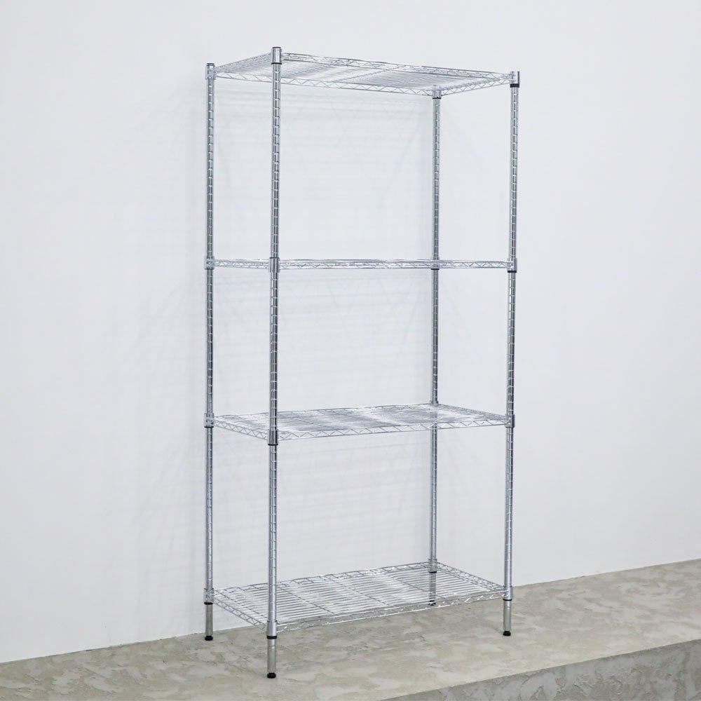Multi-Shelf Shelving Unit: Made from durable steel construction with chromed finish; with adjustable levelling feet for increased stability on uneven ground