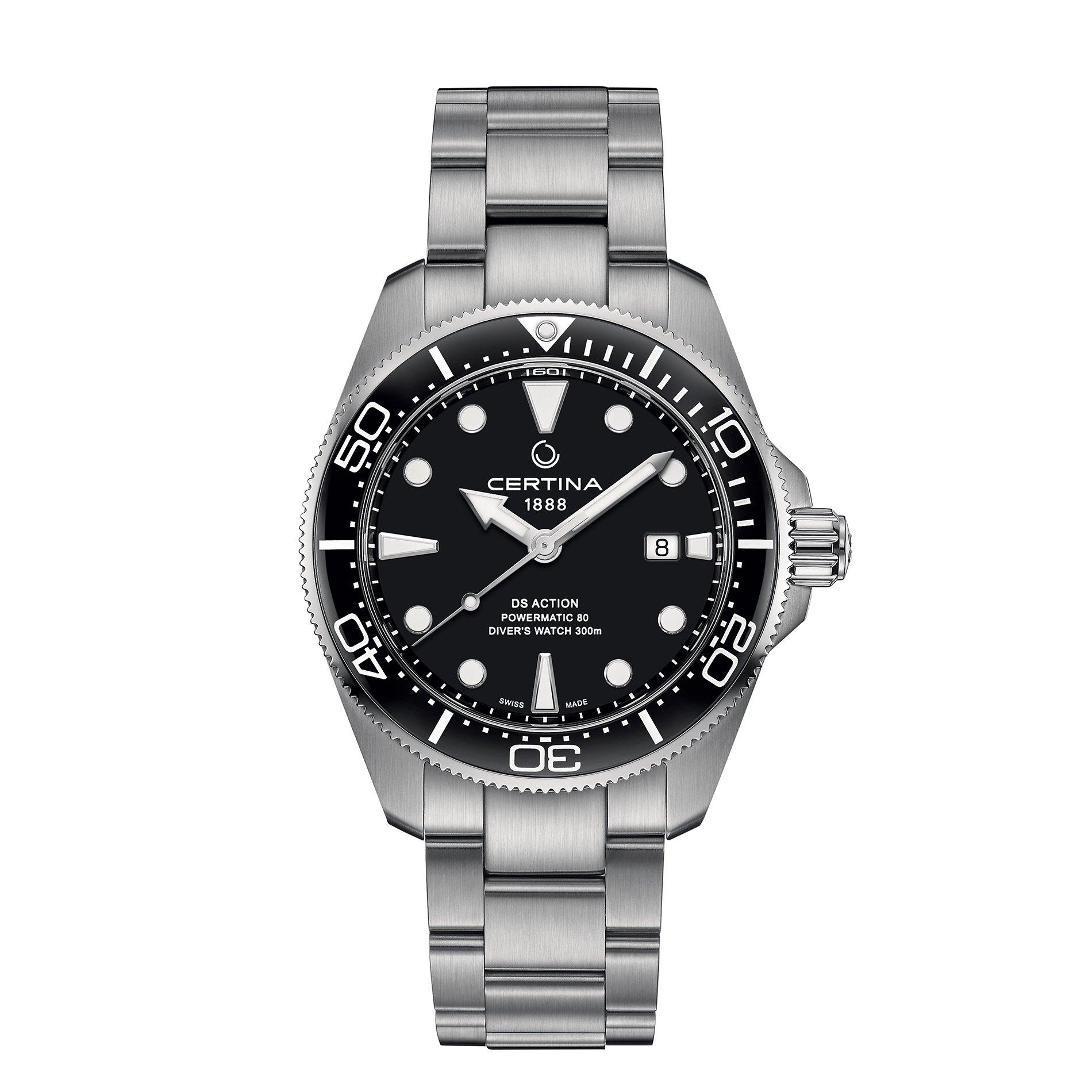 Certina's Men's Action Diver Automatic Watch features precision engineering and a robust build. Featuring self-winding movement and luminous markers, this timepiece transitions seamlessly from underwater adventures to everyday wear with its clear dial design and durable casing.
