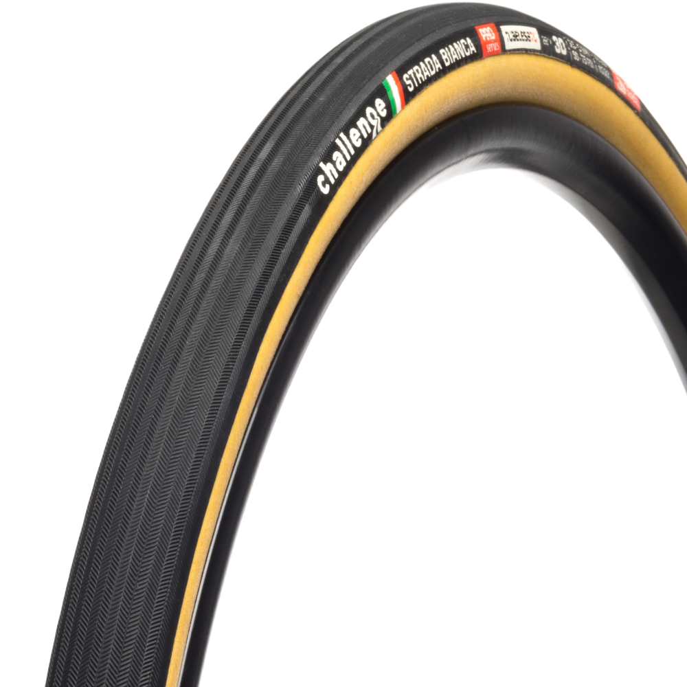 Race it hard or just head off the beaten path. The Strada Bianca takes the proven construction of the Paris-Roubaix and adds volume to take you comfortably over less-than-perfect surfaces. This is your tyre for rough roads, packed dirt, and most gravel surfaces.