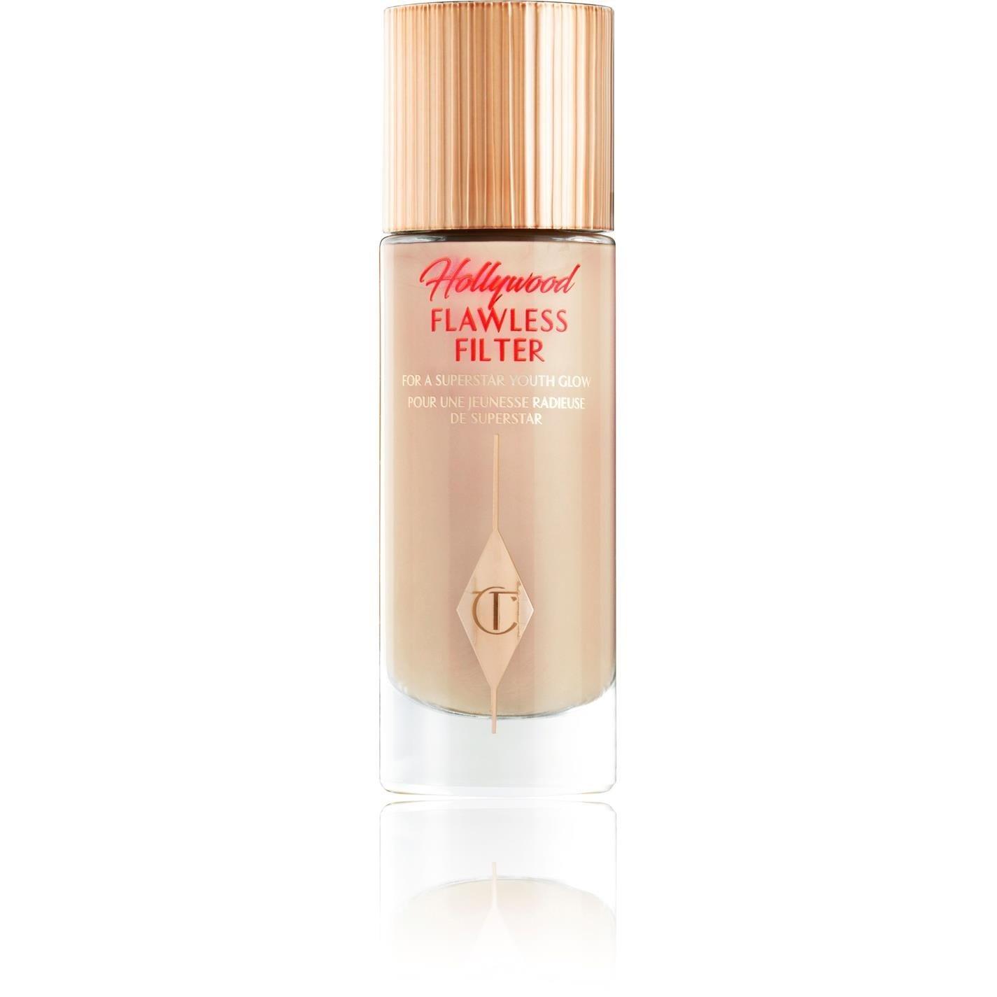 Get a starlit skin in seconds with the Charlotte Tilbury Hollywood Flawless Filter. The blurring effects of your favourite primer, the glow of a highlighter and the coverage of a digital filter, it helps to smooth, brighten and even the appearance of skin in seconds. Wear it with your favourite base product or use it under, over or instead of foundation.