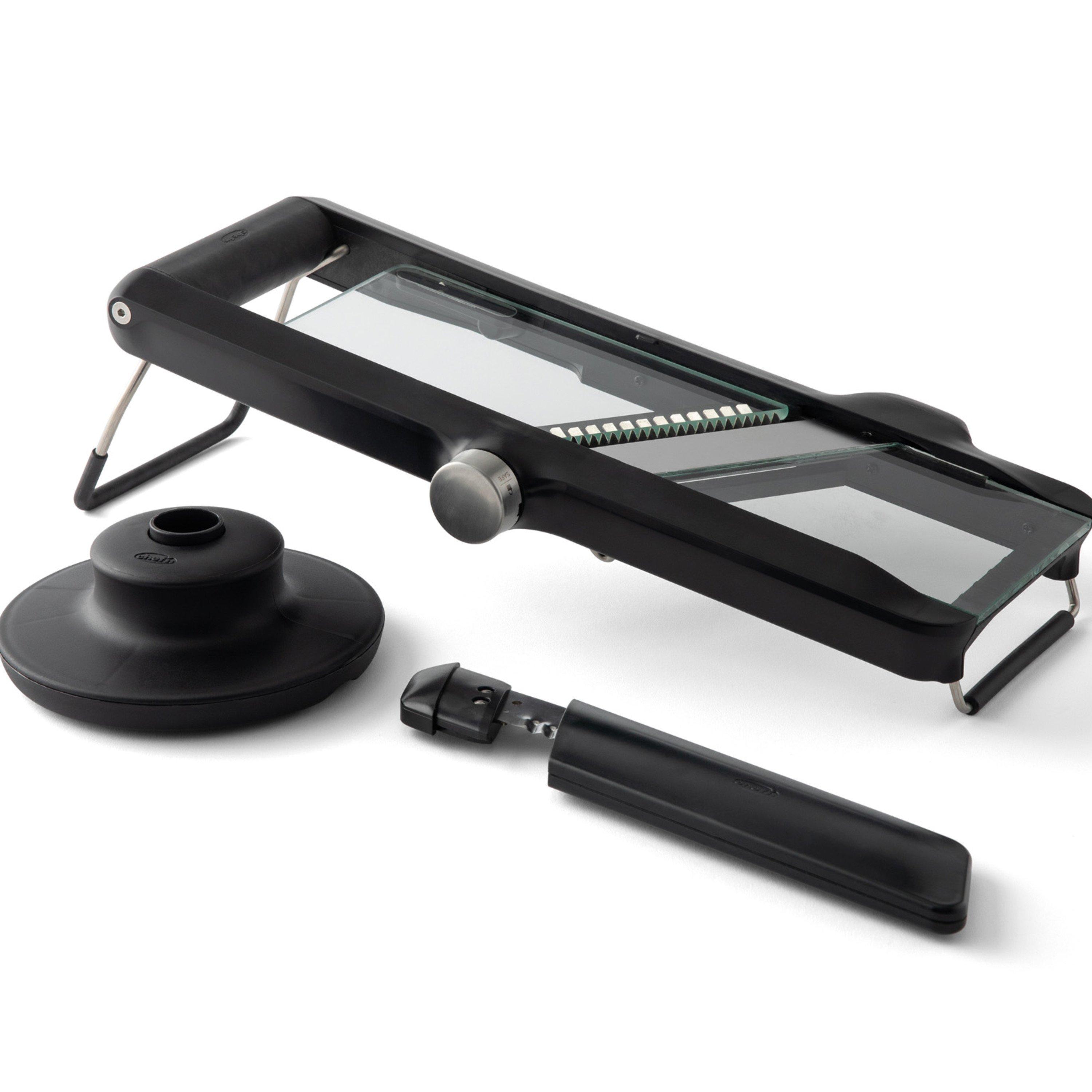 Cut just the fruit and veg you need, and not a slice more. The premium-quality glass deck on this Chef'n mandoline slicer gives you a complete view of what you've sliced - whether it's tomato slices for a BLT sandwich, or julienned carrots to go in a fresh salad. You can slice what you need, and reduce food waste in the process. It's ideal for carrying out different styles of cutting. There are three blades included: interchangeable straight slice and crinkle cut blades, and built-in julienne blades. Each one is made of sharp stainless steel, leaving you with cleanly cut, evenly-sized slices. Whatever the ingredient, slicing is designed to be safe and easy. Its chunky plastic pusher allows you to glide your fruits and veggies across the blades, while keeping your fingers well clear of the sharp edges. Includes a 12-month guarantee.