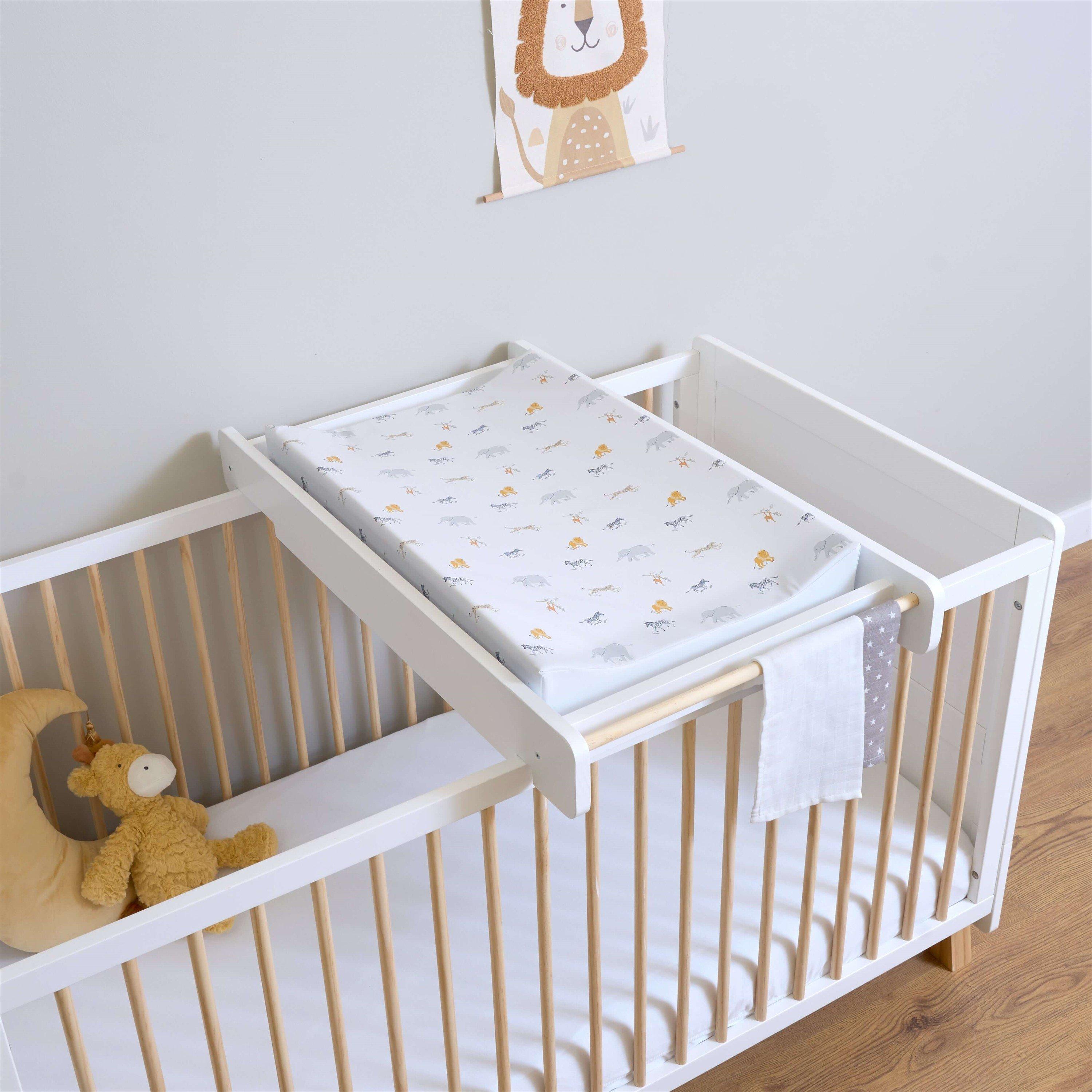 Key Features: · Space-Saving Design: Ideal for smaller nurseries, this cot top changer provides a practical solution for changing your baby without taking up valuable floor space. It fits securely on most cots and cot beds with an external width of 62-76cm.