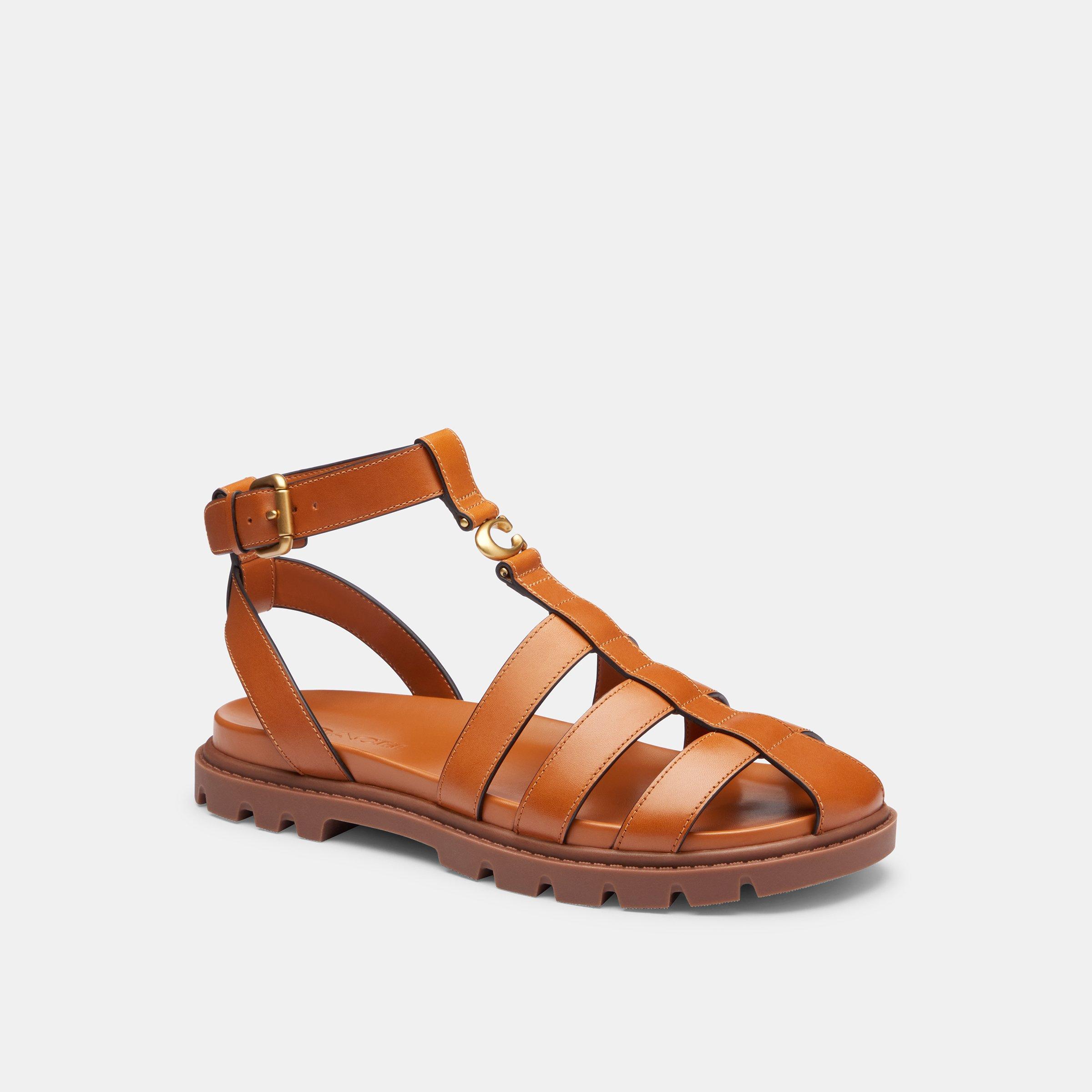 Coach's Leah Woven Fisherman Flat Sandals bring structured lattice detailing to a low-profile design. This warm-weather style pairs classic fisherman styling with a sleek sole for everyday wear.