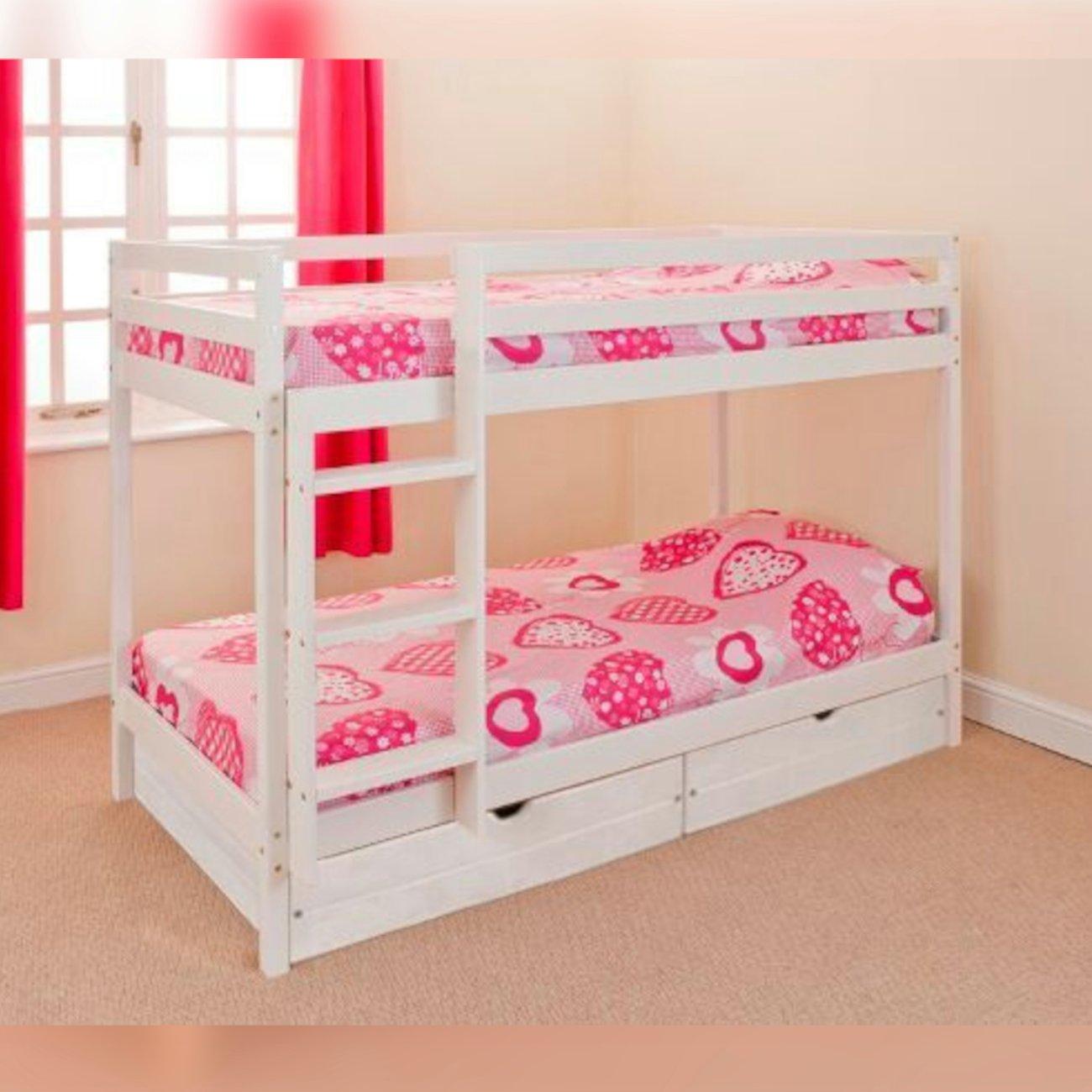 The bunk is made from solid sturdy pine available with a natural finish, or with a white wash. The bunk features fixed slatted bases to provide rigidity and support, with slatted headboard and foot boards. We offer a selection of our range of mattresses to include with your bed frame. The bunk features fixed slatted bases to provide rigidity and support, with slatted headboard and foot boards. We offer a selection of our range of mattresses to include with your bed frame. This bunk bed DOES NOT split into two beds. Comes flat Packed for simple home assembly, all tools and instructions included. This Frame is supplied with two mattress with a medium soft feel spring system and a depth of approximately 17cm.