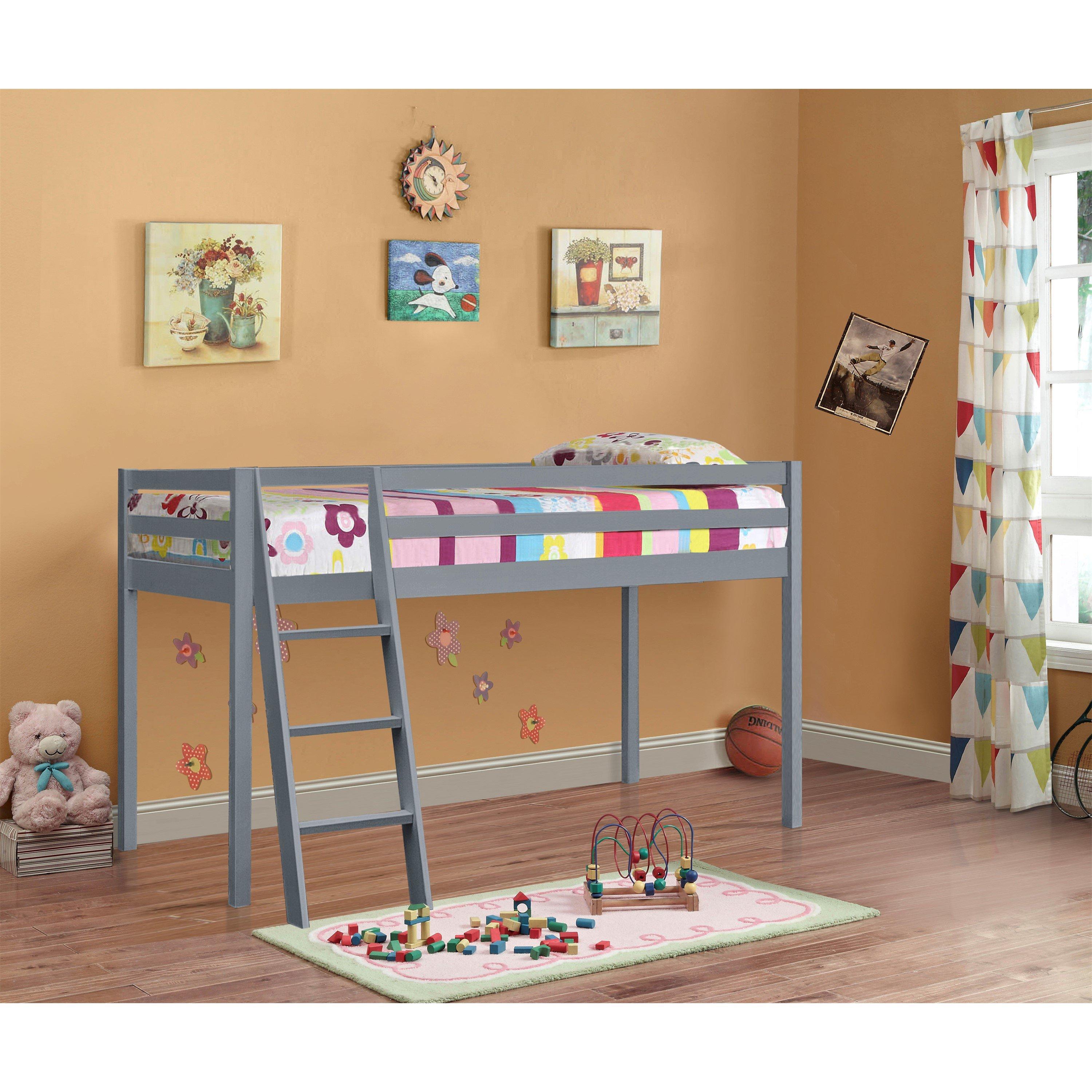 This 3ft mid-sleeper bed is the perfect addition to any kids bedroom.,Available in natural, white, caramel or grey, this bed frame has the unique design including studry ladder for easy access. This bed comes flat packed for simple home assembly, all tools and instructions included. This frame is supplied with a mattress with a medium soft feel spring system and a depth of approximately 17cm. Dimentions L 197.5cm x W 128cm x H 110cm (width includes ladder positioned)