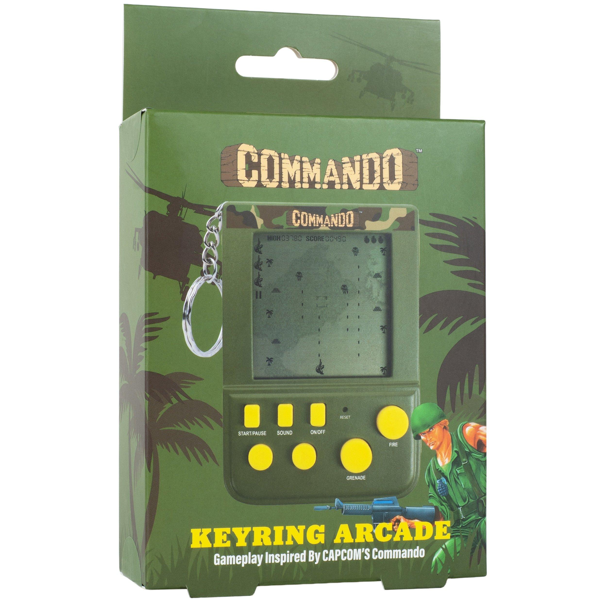 Take the battlefield with you wherever you go with the Commando Keyring Arcade! Inspired by Capcom’s iconic top-down shooter, this mini handheld packs retro intensity into a palm-sized device. Blast enemies, dodge incoming fire, and rescue hostages—all from a compact unit that clips to your keys or bag!
