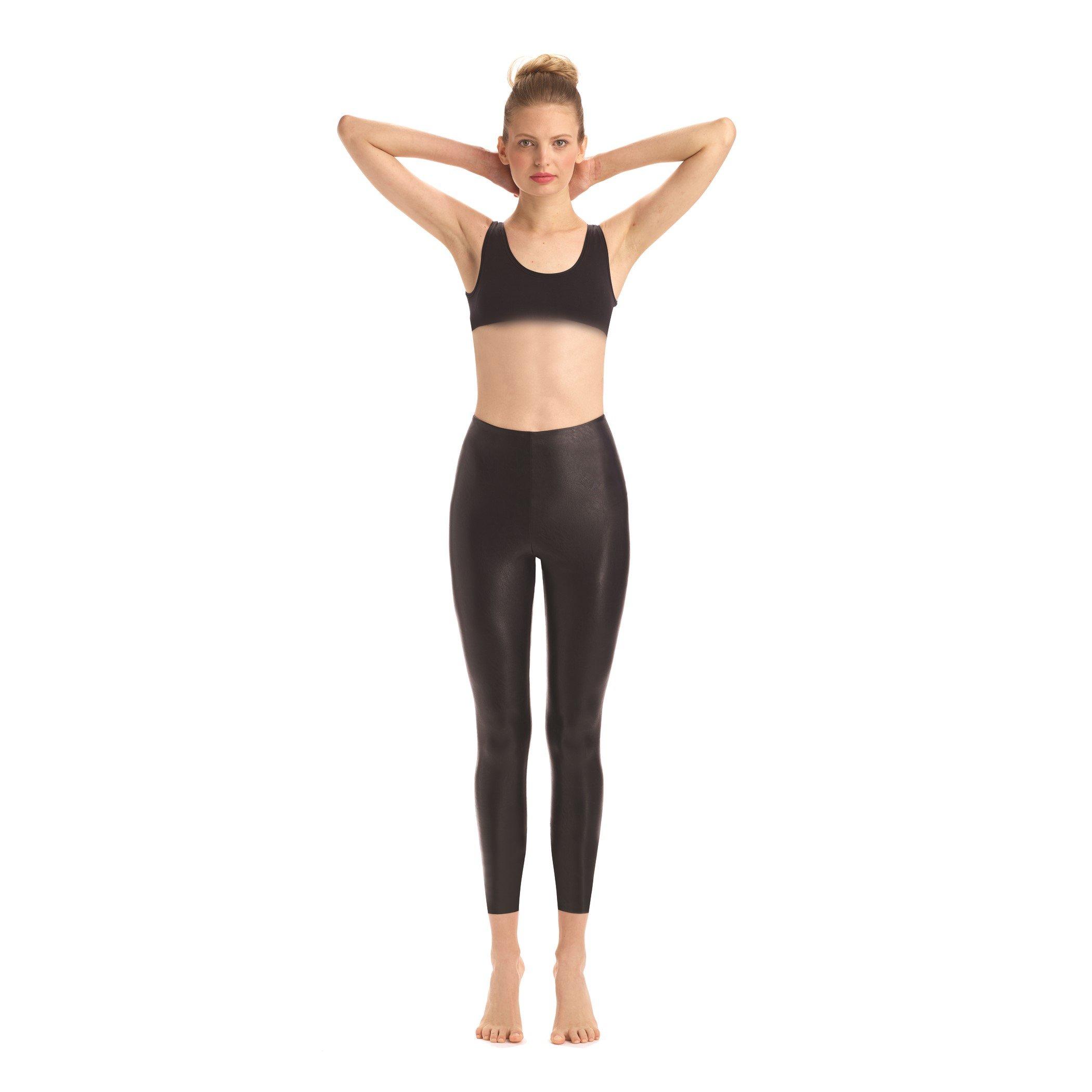 Command attention with these, Faux Leather 7/8 Legging from Commando. As a brand commando puts people first so these leggings are designed for the fashion-forward individual who appreciates quality Crafted with a blend of polyester, polyurethane, and spandex, these leggings deliver the look and feel of real leather, without compromising on comfort. These leggings boast phenomenal four-way stretch, raw-cut edges, and smoothing properties that enhance your silhouette like no other. Indulge in the comfort of a four-way stretch and recovery that ensures a perfect fit every time you slip them on.