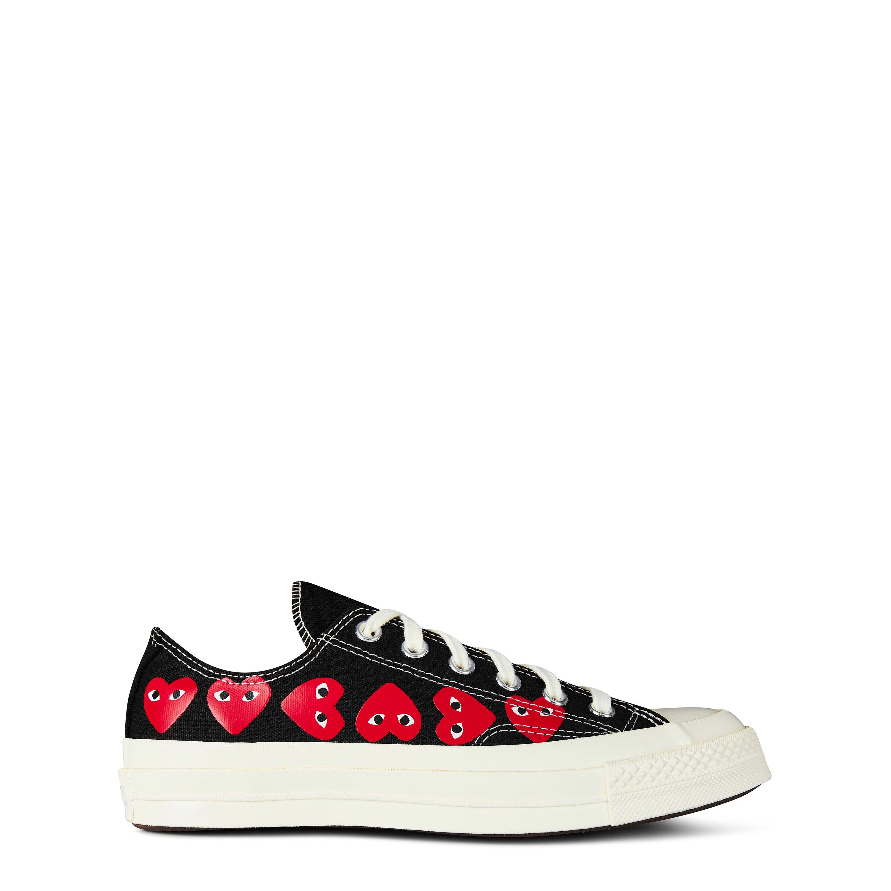 Step out in style with the Comme Des Garçons Play x Converse Multi Hearts-print Low-top Sneakers. Boasting signature heart print along the sides, these trainers pay tribute to Comme Des Garçons Play's unique and playful street-wear vision. Crafted from premium cotton canvas, these sneakers are designed in the cult classic Chuck Taylor style, a silhouette that has continued to transcend trends - remaining a mainstay in popular fashion to this day.