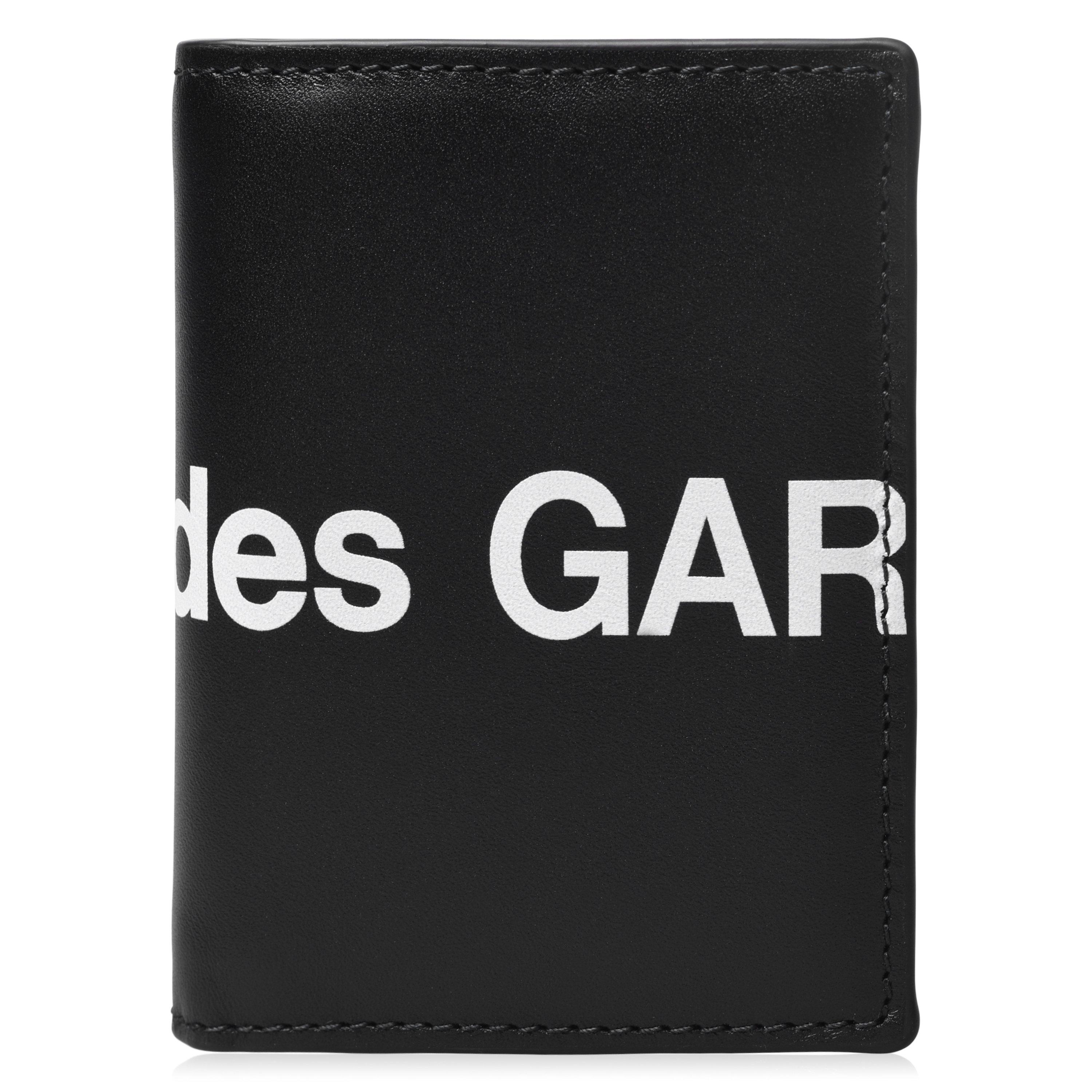 Comme des Garcons Wallet's Huge Logo Billfold delivers visual impact with functional organisation. The designer wallet features a clean architectural structure with multiple card slots and currency compartments, made with precise stitching throughout for lasting durability.